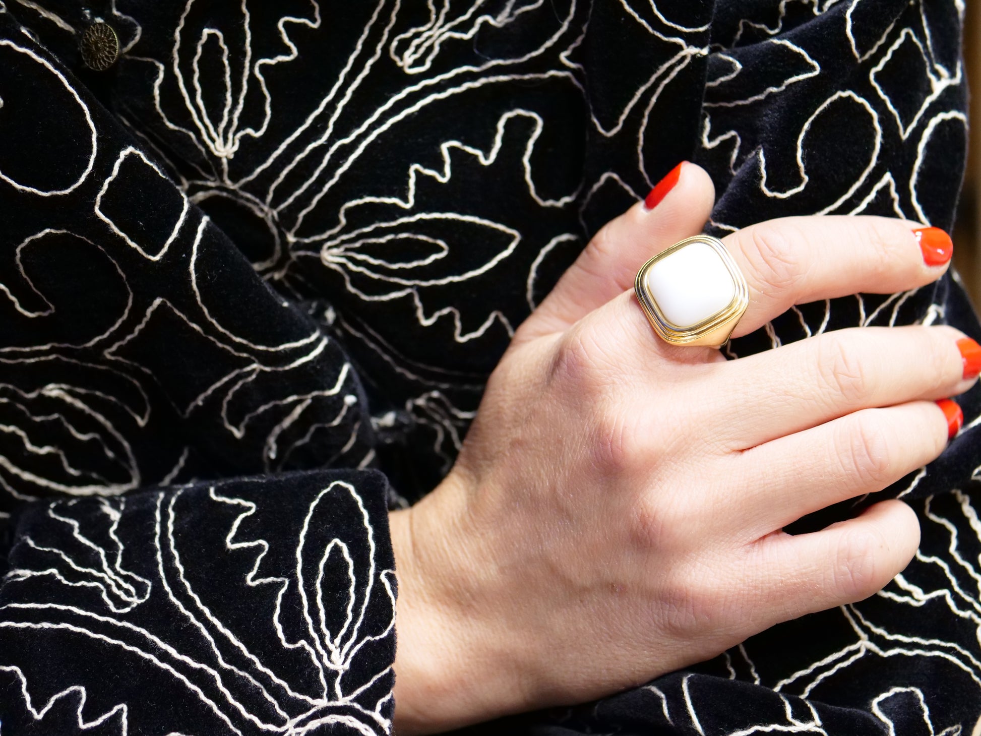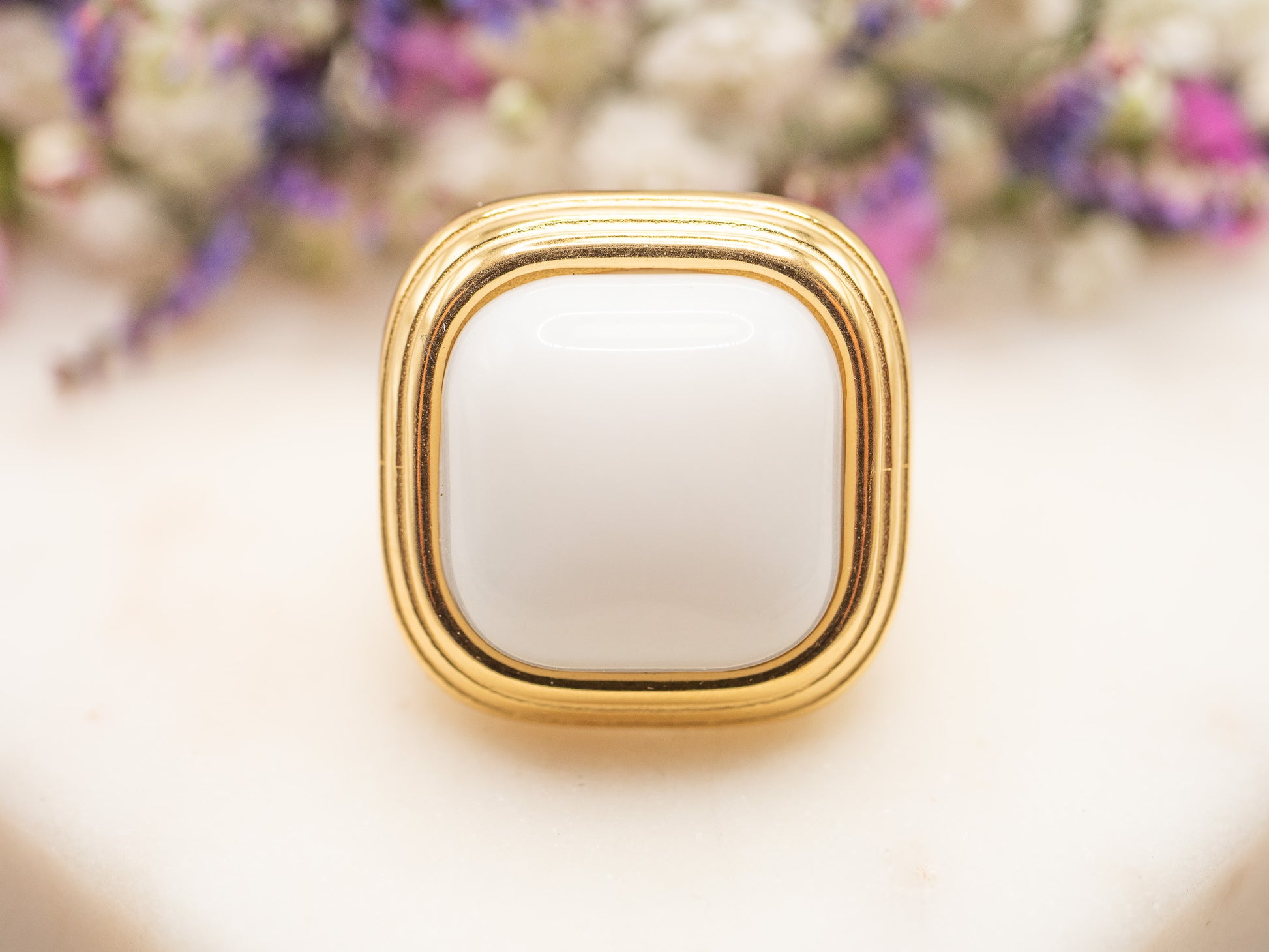 Chelsea, c’est l’élégance épurée qui ne demande ni effort, ni excuse. Une bague acier inoxydable, dont le design structuré et la présence imposante rappellent l’audace géométrique des années 70. En son centre, une pierre en céramique blanche lustrée — mesurant environ 2,1 cm x 1,8 cm, reflète la lumière avec douceur et pureté.