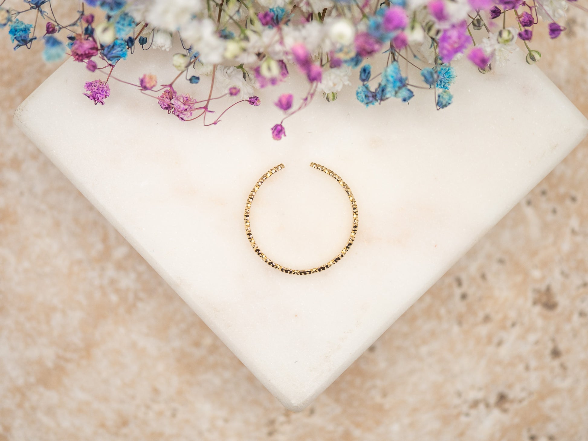 Un bijou comme un biscuit de Noël anglais : délicatement travaillé, doré à souhait, et absolument irrésistible. Crown, c’est la bague qu’on imagine tout droit sortie d’un coffret ancien, déniché dans une boutique d’antiquités à Notting Hill, avec un charme vintage assumé et un esprit royal discret.