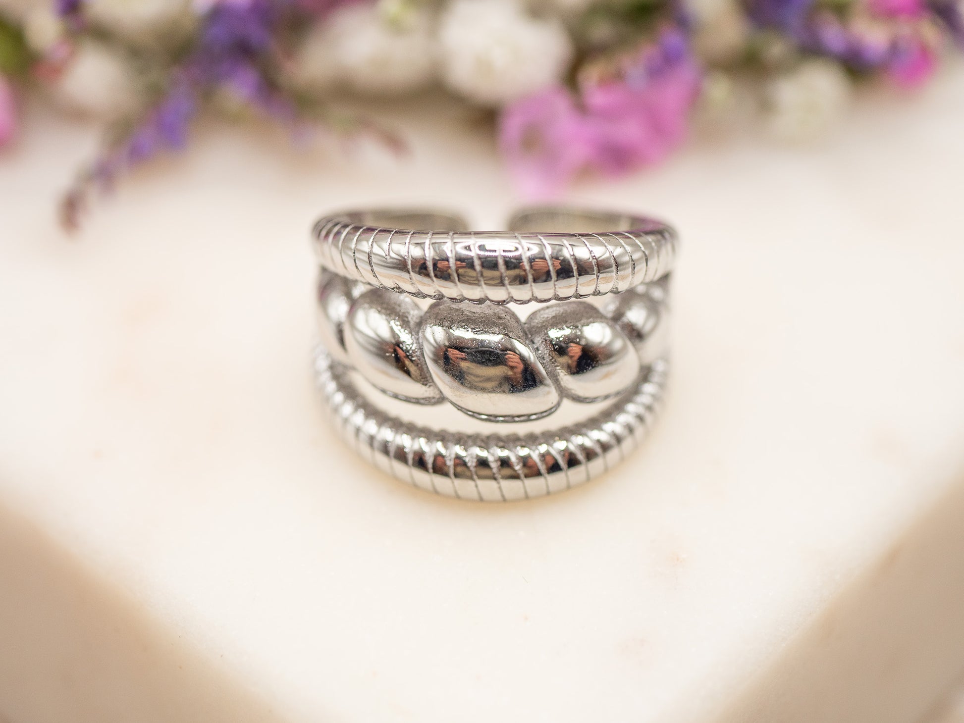 Avec Rebel, l’esprit des années 70 s’invite au bout des doigts. Cette bague en argent massif mêle volumes sculpturaux et textures travaillées, dans une allure graphique et résolument contemporaine. Les détails torsadés et bombés rappellent les silhouettes audacieuses de la mode londonienne de l’époque, entre l’élégance géométrique de Mary Quant et les influences naissantes du mouvement punk.