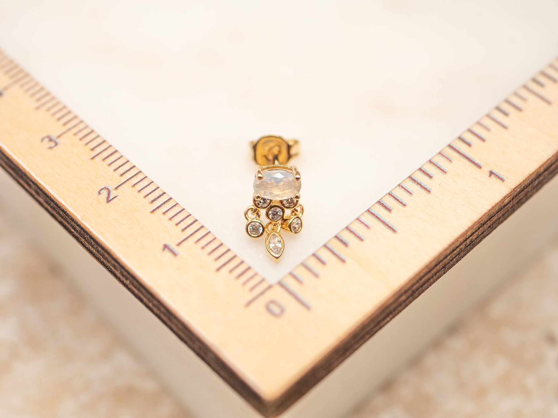 • Pierre centrale : ovale, effet pierre de lune (~0,6 cm)