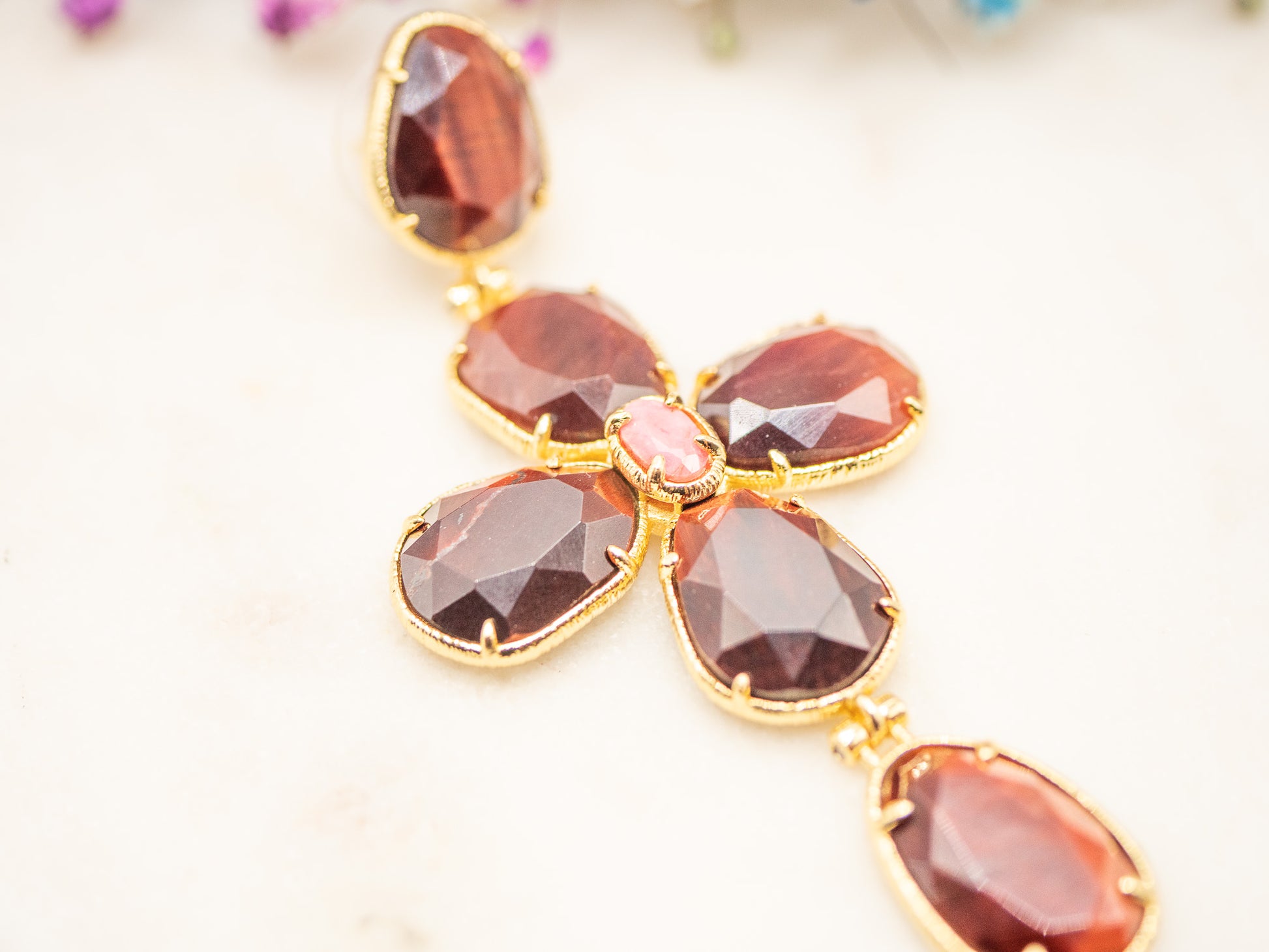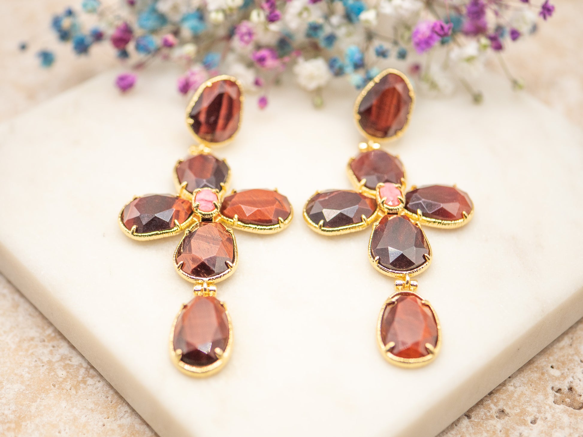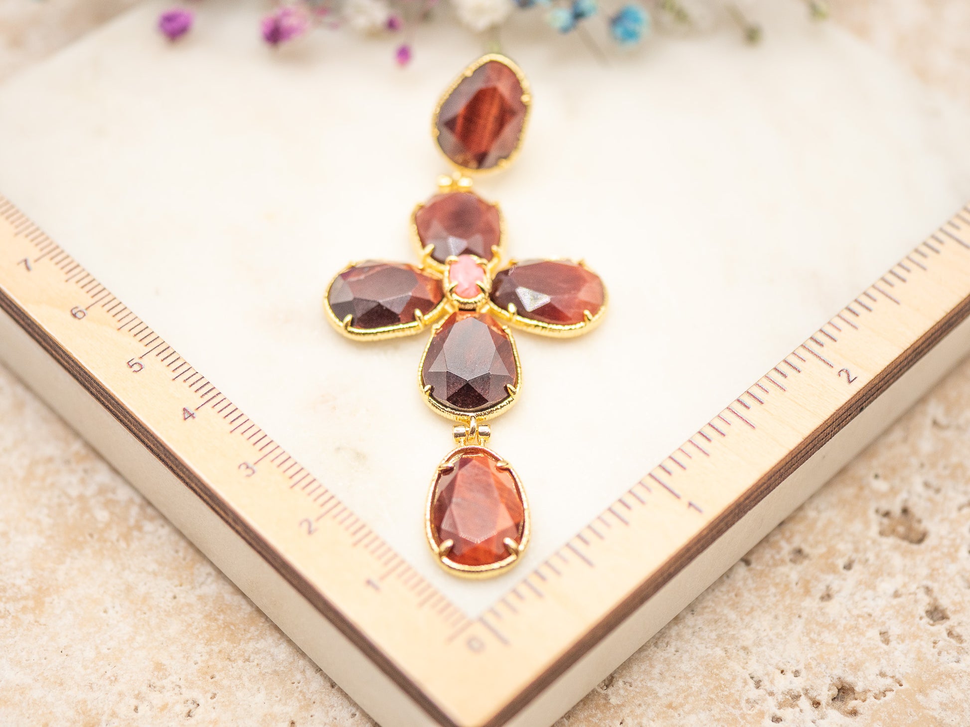 Chaque pierre, taillée avec soin, capte la lumière et évoque la richesse des bijoux d’antan. Le tout est serti sur une monture généreuse en acier inoxydable , pour un rendu à la fois opulent et raffiné. La touche finale : une petite agate rose au centre, pour une note subtile de contraste et de douceur.