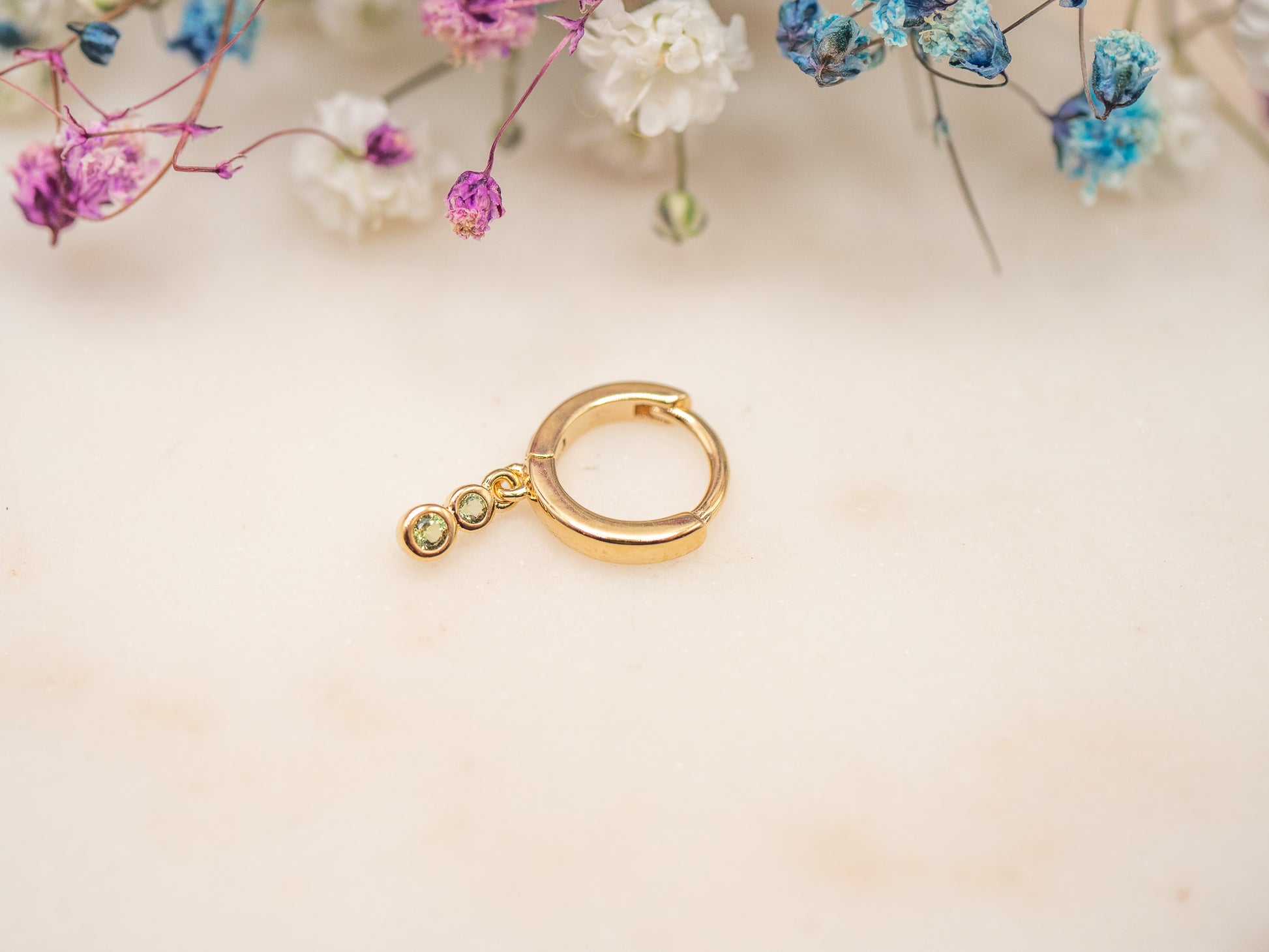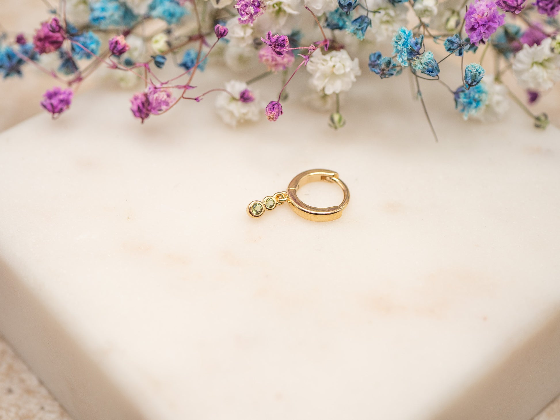 Discrète, chic et scintillante, Glow est une mini créole plaquée or 18 carats ornée d’un trio de petits cristaux vert givré, comme trois gouttes de rosée déposées au fil d’un matin d’hiver. Son design épuré se pare d’une touche lumineuse et délicate, capturant la douceur du givre sous le soleil pâle d’un matin de décembre.