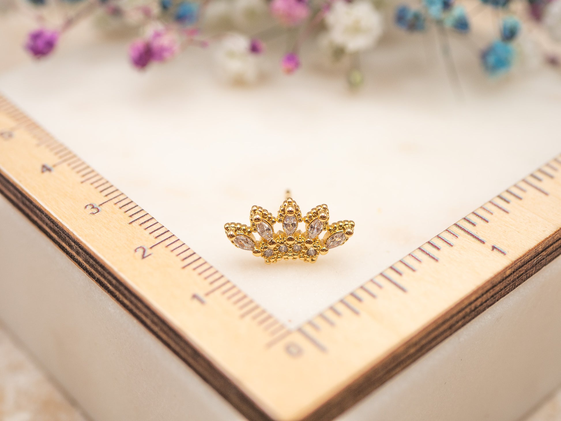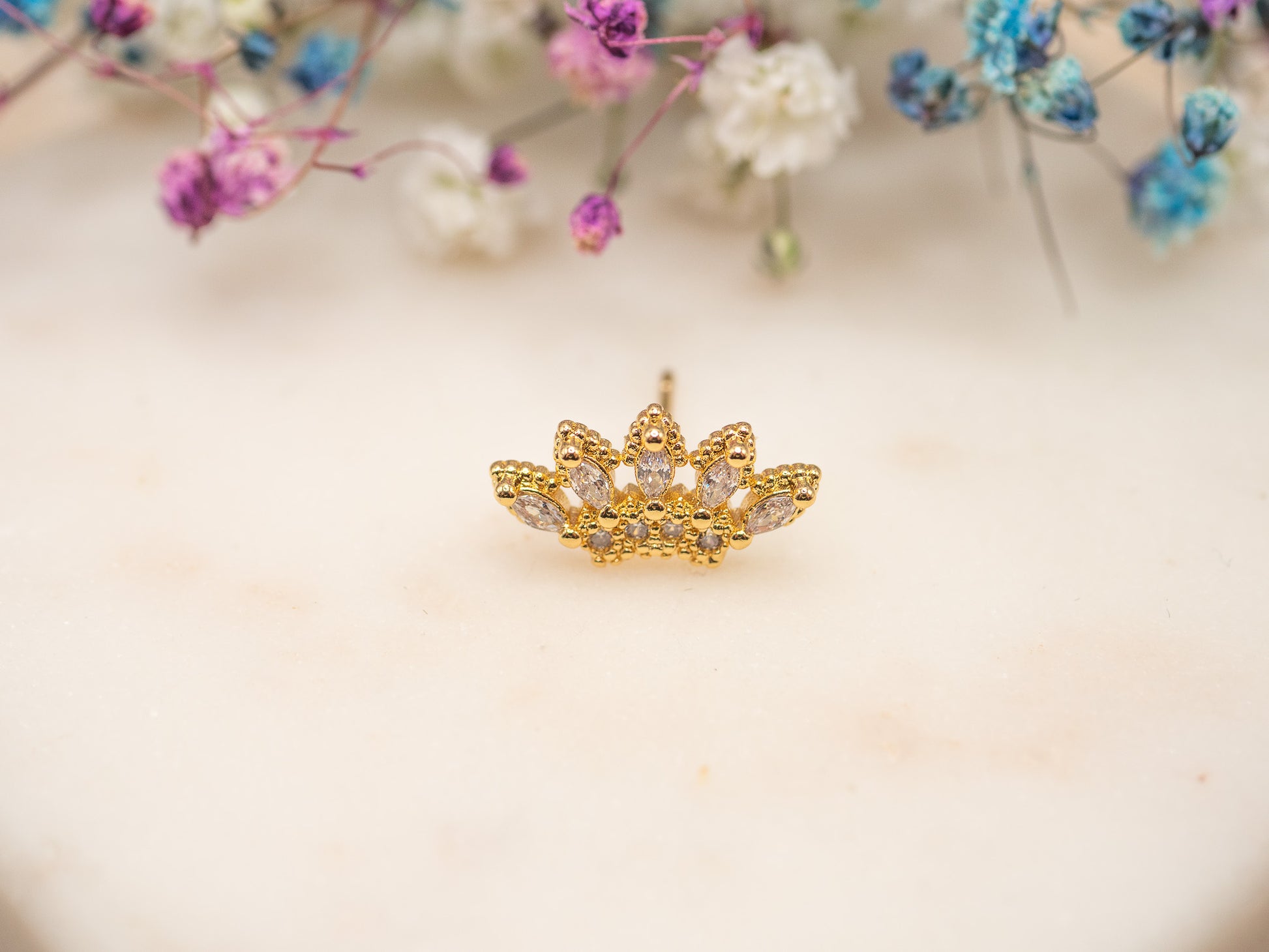 Petite mais majestueuse, Icy Majesty est une boucle d’oreille unique qui évoque les contes d’hiver et les bals royaux dans un palais victorien. Sa forme de mini couronne, délicatement ornée de zirconiums étincelants, semble sortie d’un coffret ancien appartenant à une duchesse anglaise.