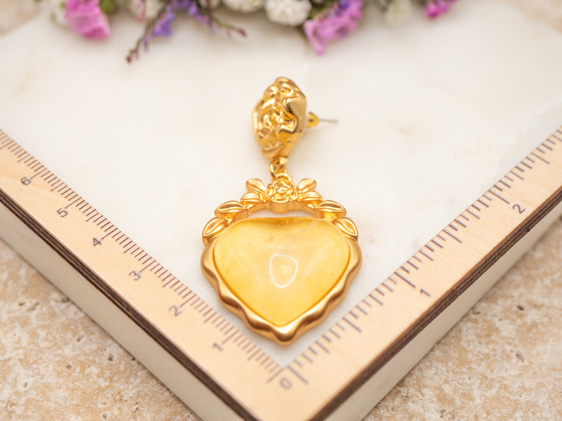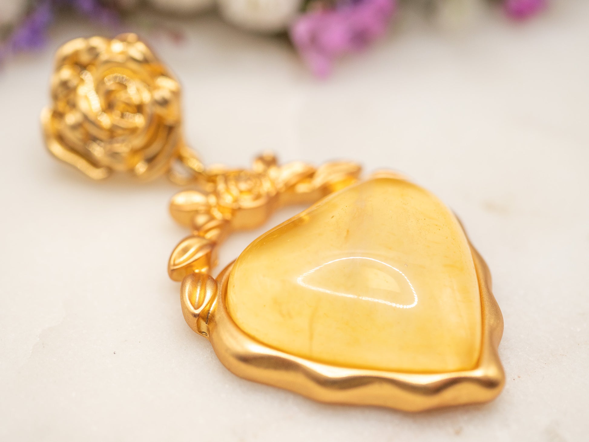 Icône, muse, héroïne de scène : les boucles Blondie s’assument en volume et en caractère. Cœur opulent en résine jaune solaire, serti d’un cadre en plaqué or 18 carats ondulé, surmonté d’une rose stylisée. En clin d'œil à l’allure de Debbie Harry et à l’héritage des muses du Swinging London, elles affirment leur place entre tendresse pop et flamboyance assumée.