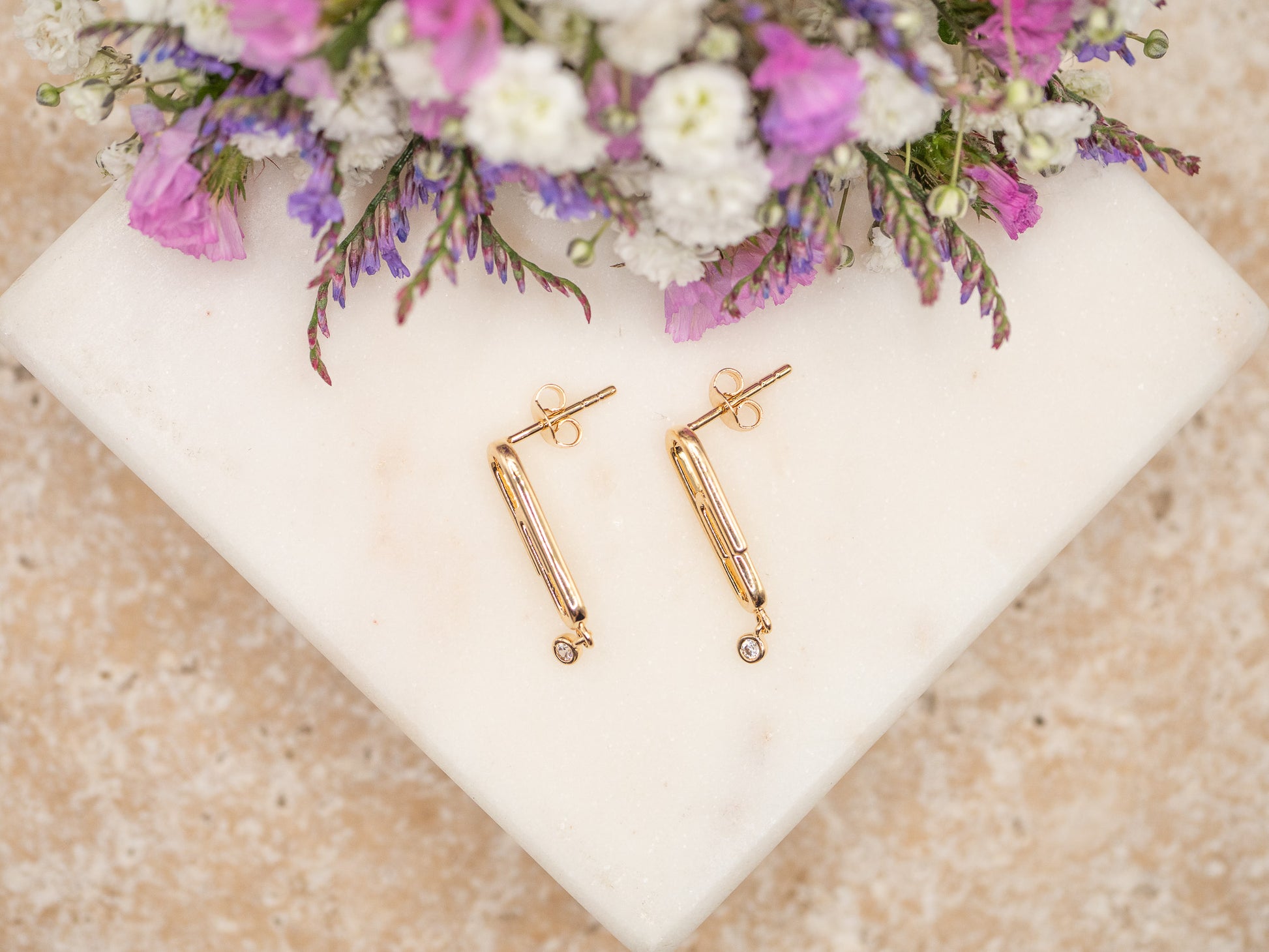 Bowie, ce sont les boucles d’oreilles pour les femmes caméléons — à la fois rock et minimalistes, à l’image du Londres des seventies où les looks se déclinaient entre tailoring androgyne et éclats glam. Une pièce graphique, asymétrique, qui évoque une épingle à nourrice chic ou une agrafe détournée en bijou.