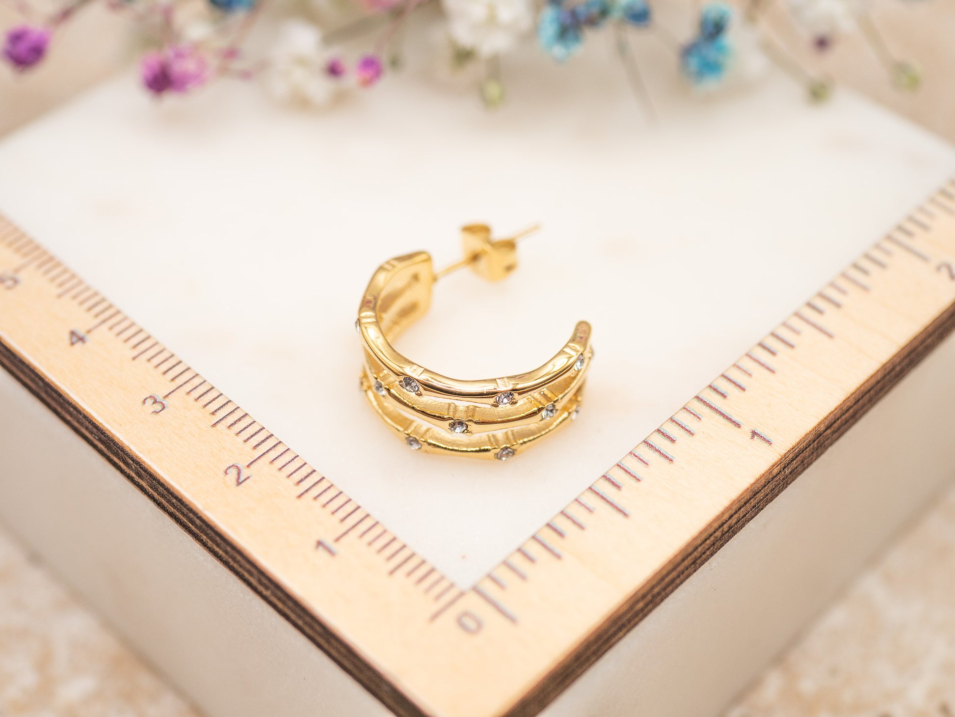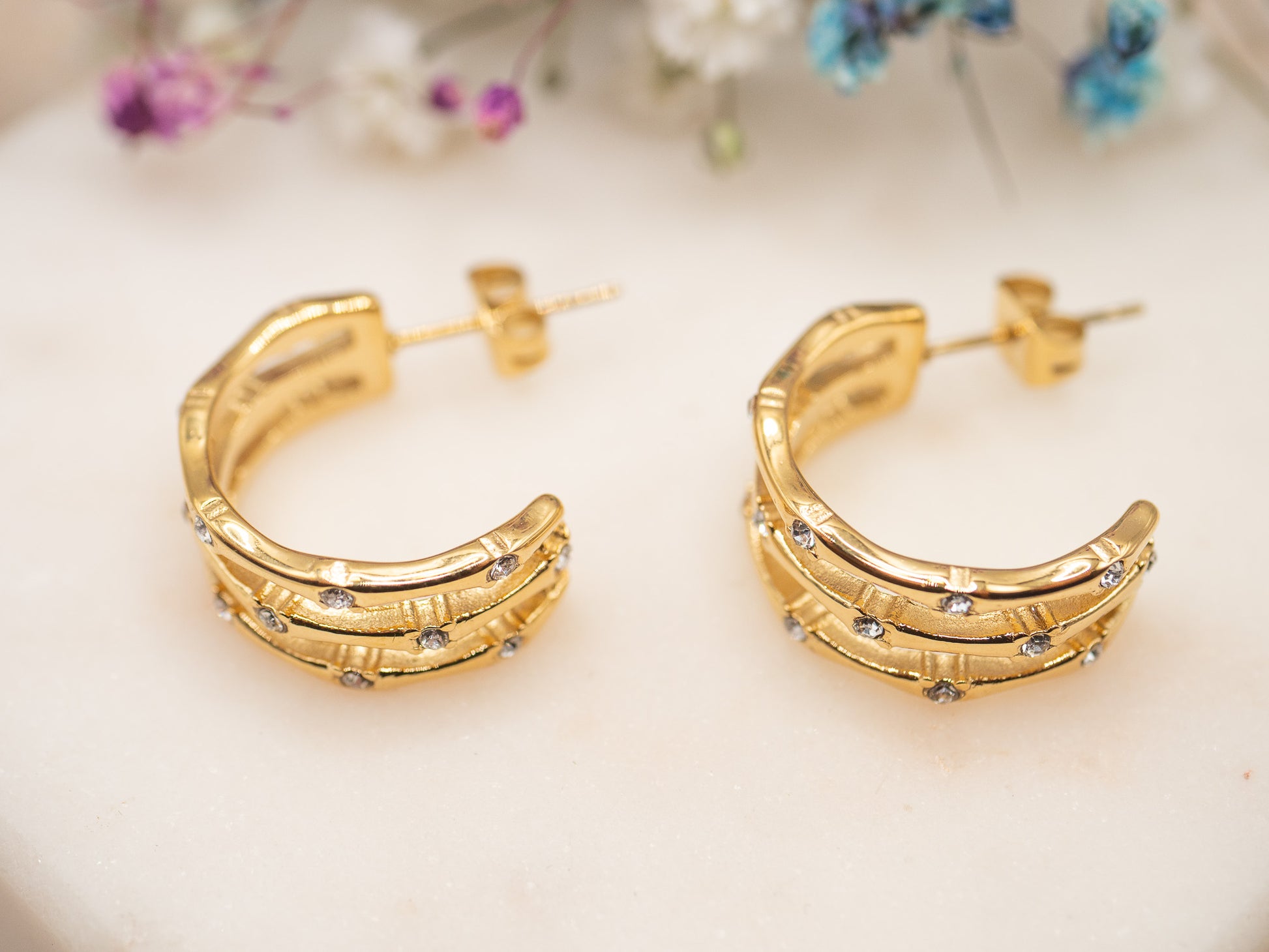 • Matériau : Plaqué or 18 carats + zirconiums incrustés