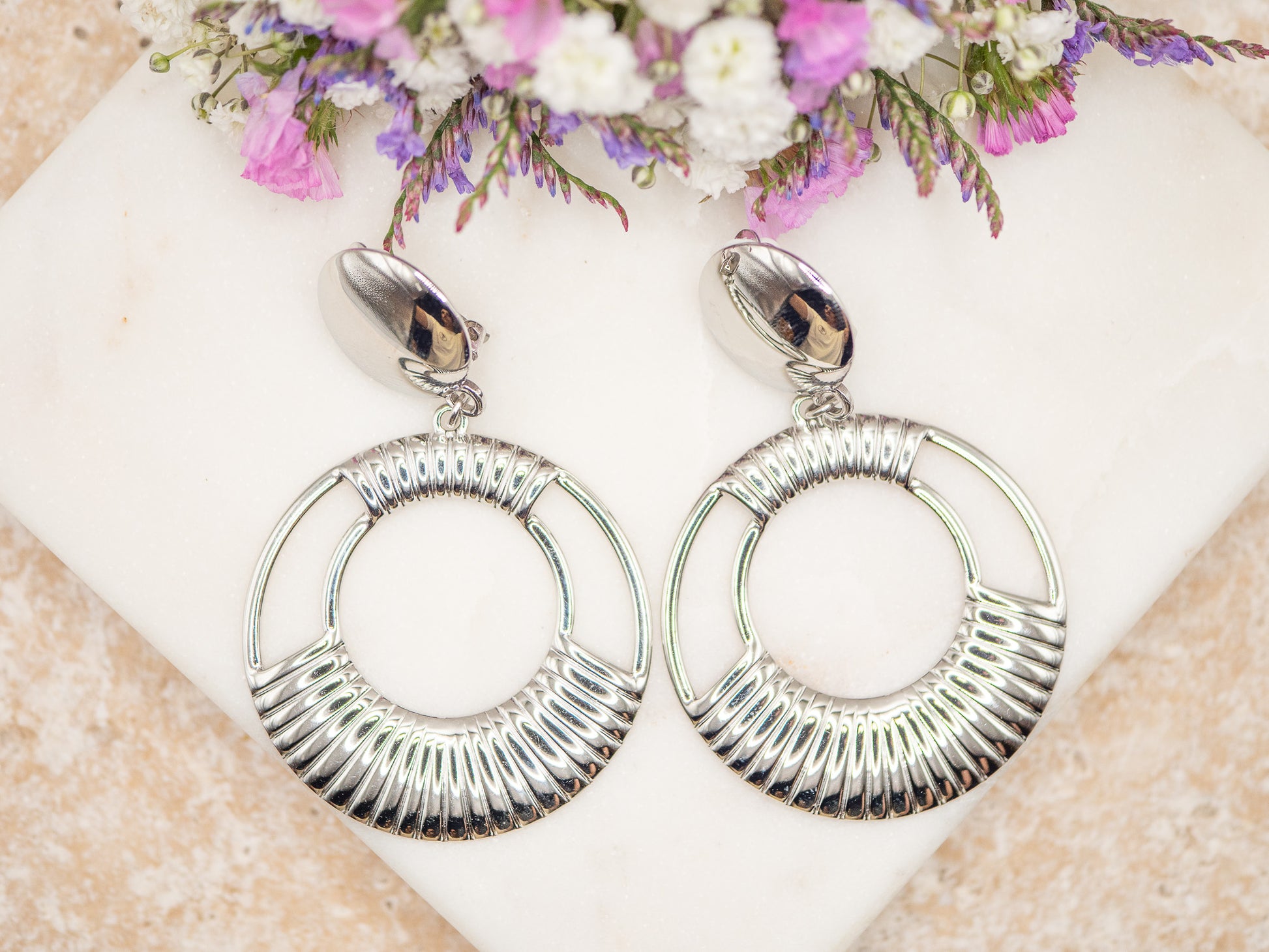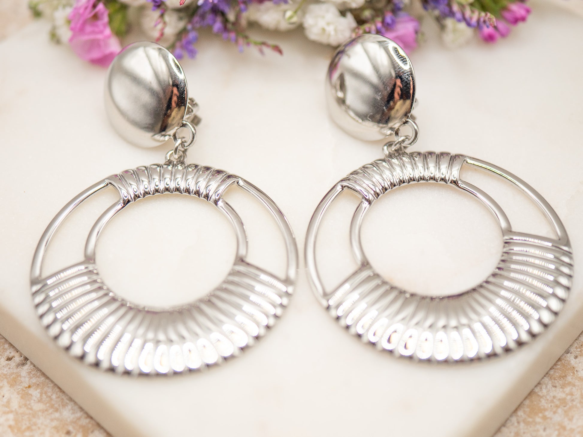 Cosmica, ce sont les boucles d’oreilles des filles qui brillent plus fort que la skyline de Soho à la tombée de la nuit. Un design oversize en argent, graphique et texturé, qui évoque les cercles hypnotiques des années psychédéliques — mi-sidéral, mi-soul.