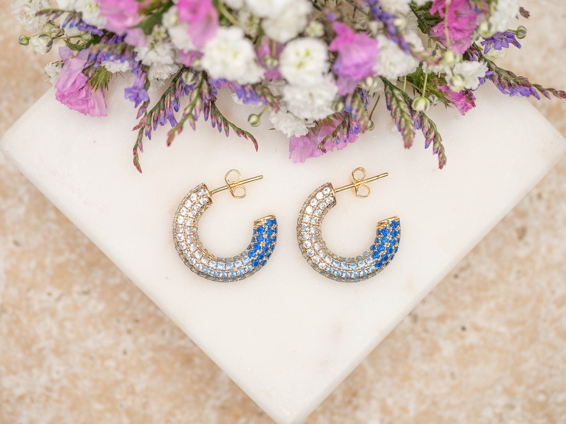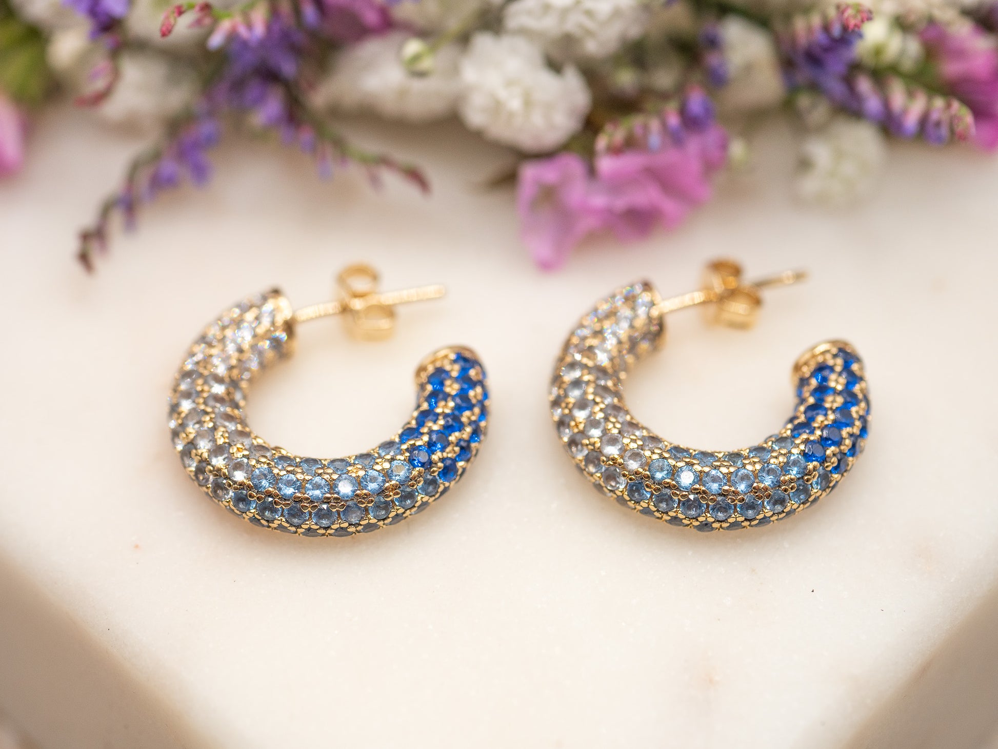 Avec Glow, tout est dans le contraste : les cristaux roses flirtent avec les plus clairs, le pavage opulent s’assume, et la forme de créole bombée revisite les classiques avec une insolence précieuse.