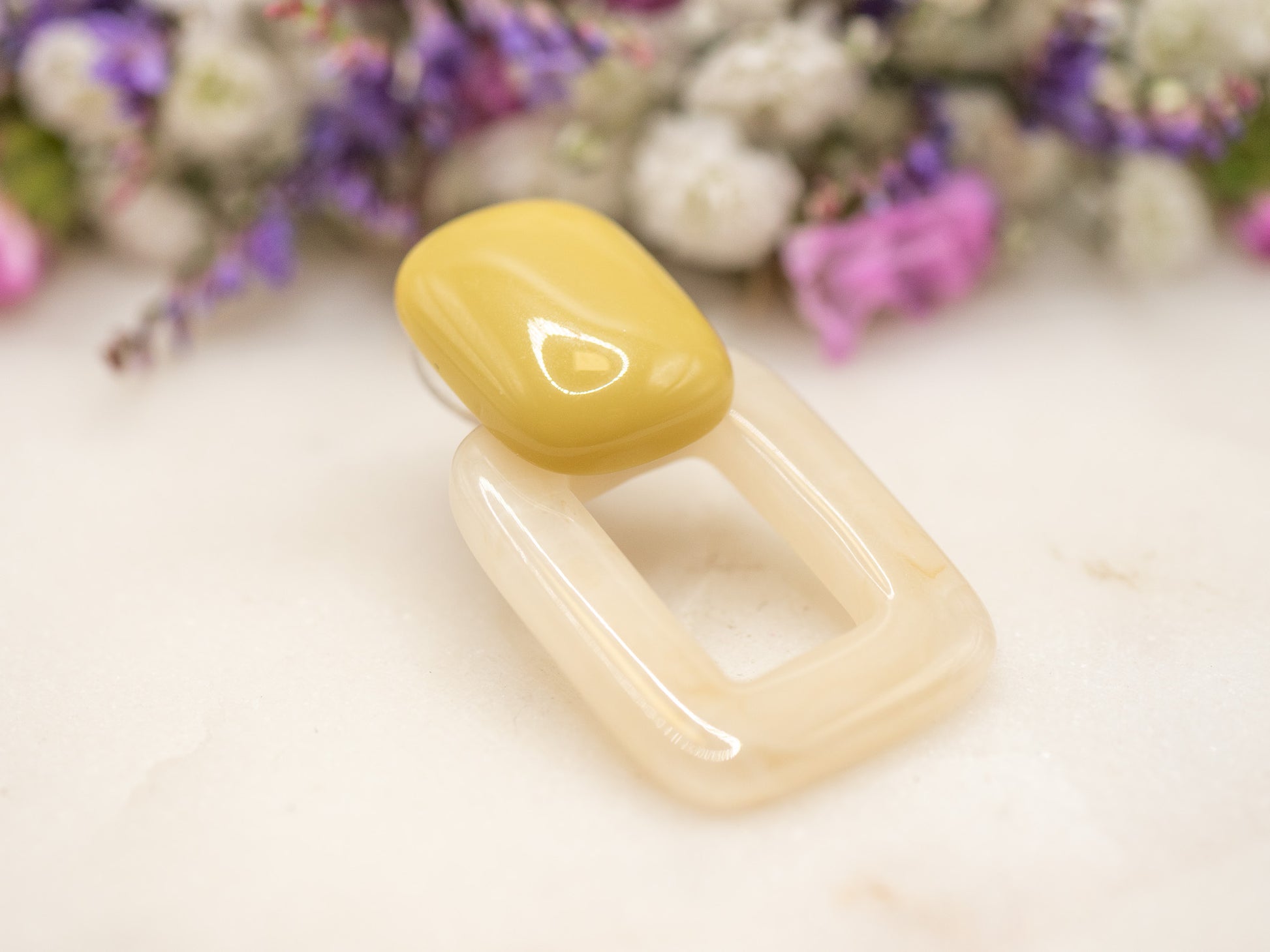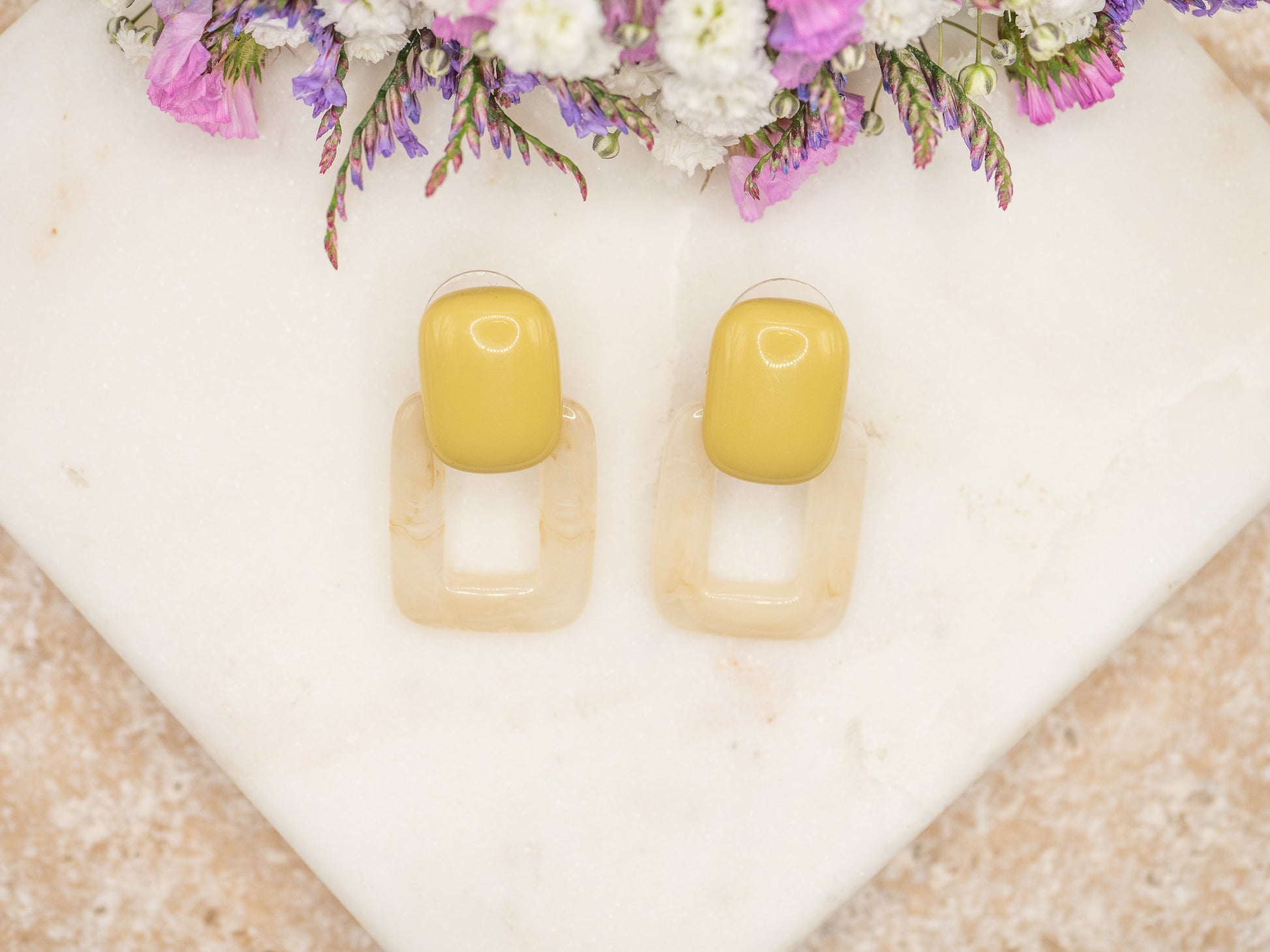 Avec leur teinte jaune miellée et leur forme géométrique résolument seventies, les boucles Honeybourne ont ce je-ne-sais-quoi de vintage qui évoque les vitrines colorées de Carnaby Street, les vinyles posés sur un Teppaz et les silhouettes affûtées de la mode londonienne façon Mary Quant.