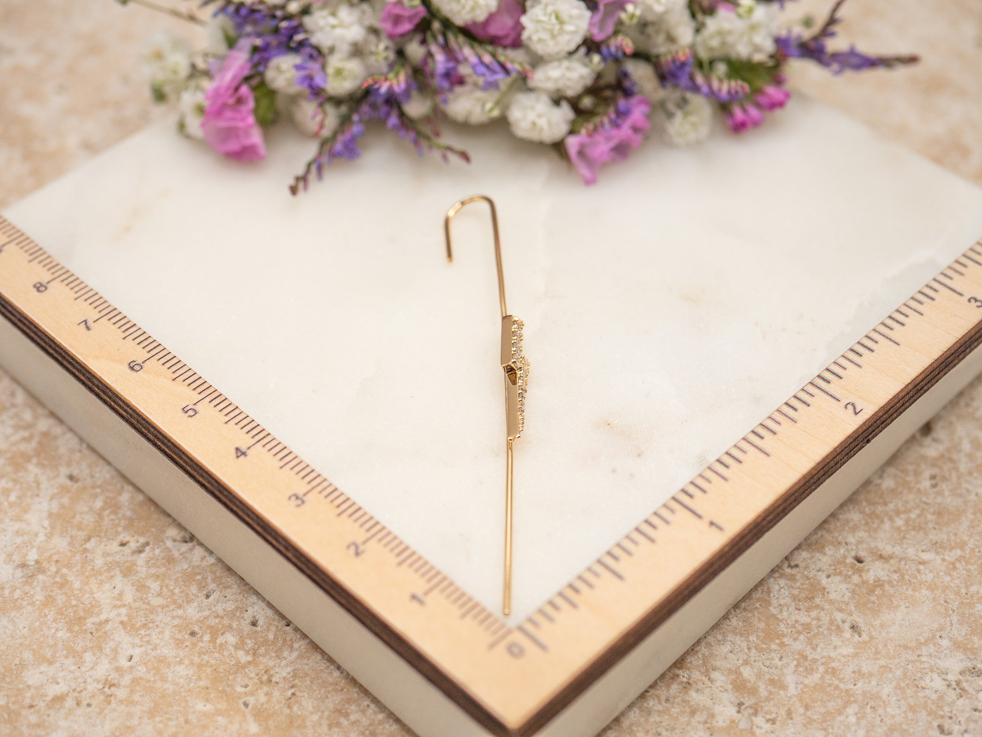 À porter seule ou en duo asymétrique, selon ton humeur. Une aiguille dorée pour oreilles percées.
