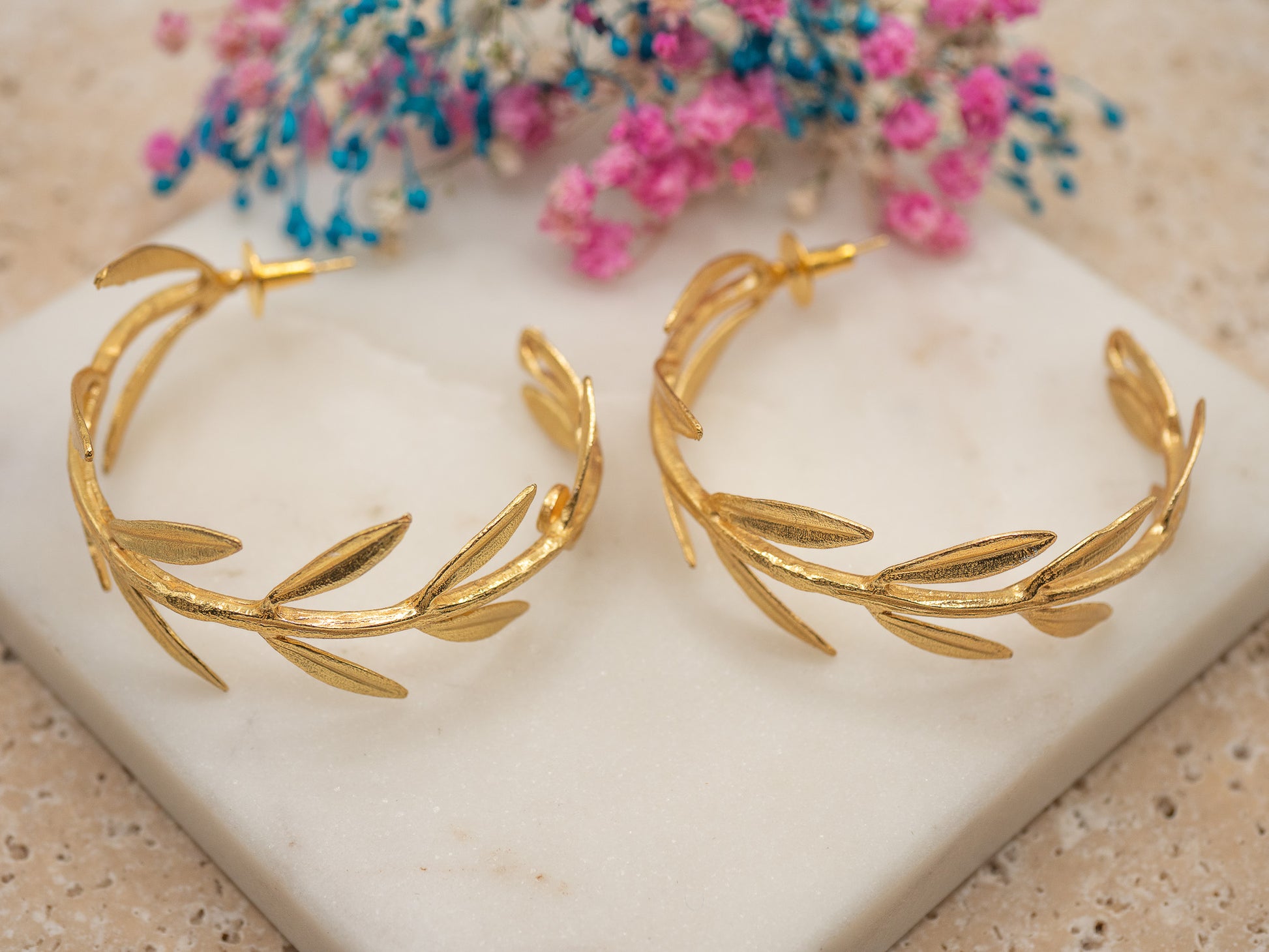 Les créoles Oliva Sevillana s’inspirent des rameaux d’olivier que l’on retrouve dans les jardins andalous baignés de lumière. Symbole de paix, de force et de féminité ancestrale, l’olivier évoque une élégance naturelle, jamais forcée, toujours raffinée.