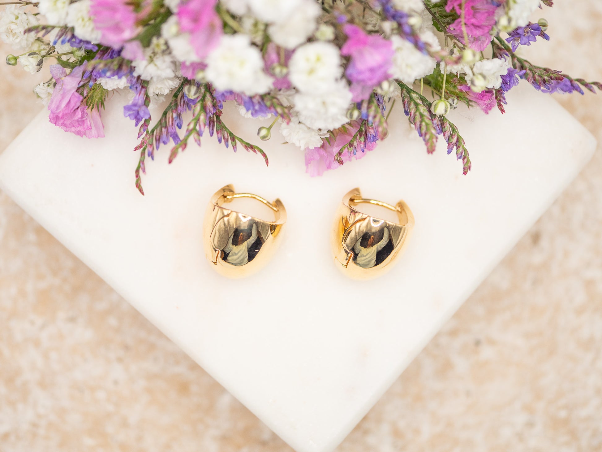 Roxy, c’est la preuve qu’on peut hurler au glam sans dire un mot. Ces boucles d'oreilles plaqué or 18 carats bombées sont l'écho parfait des années 80, remixées avec la désinvolture punk de Londres. Une silhouette sculpturale, un fini miroir presque provocant, et un volume assumé qui attire tous les regards — même celui de votre reflet.