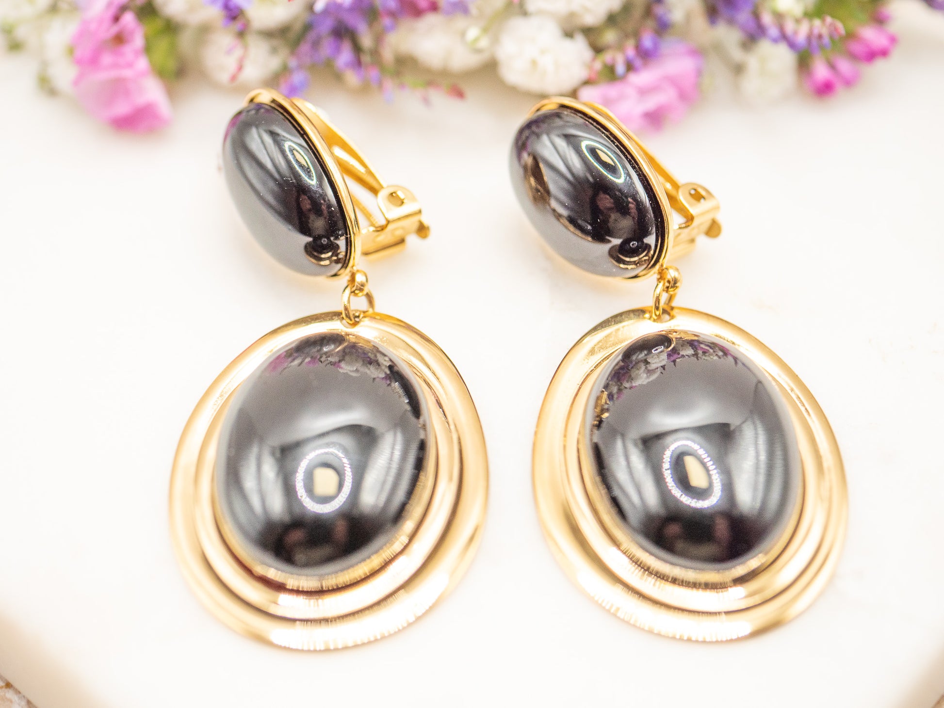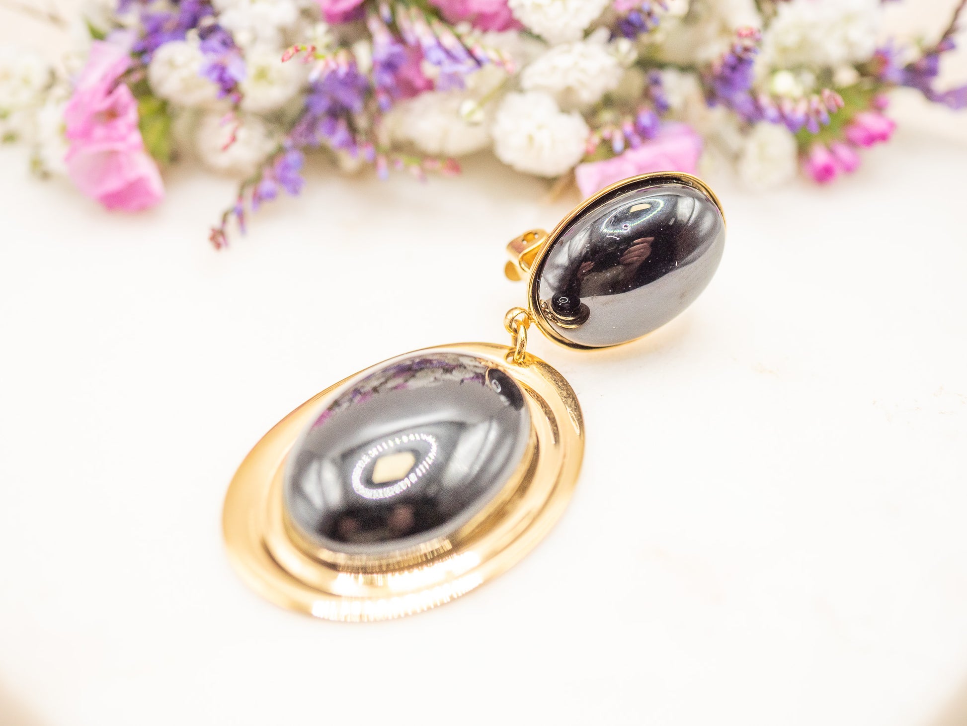 Starlet, c’est la boucle d’oreille des héroïnes de film noir et des reines du Studio 54 — celles qui brillent d’un éclat profond, mystérieux, et résolument vintage. Montée sur une base en acier inoxydable , elle se compose d’un cabochon noir lustré qui semble capturer la lumière comme un objectif de caméra, surmonté d’un clip bombé assorti pour souligner le lobe avec élégance.
