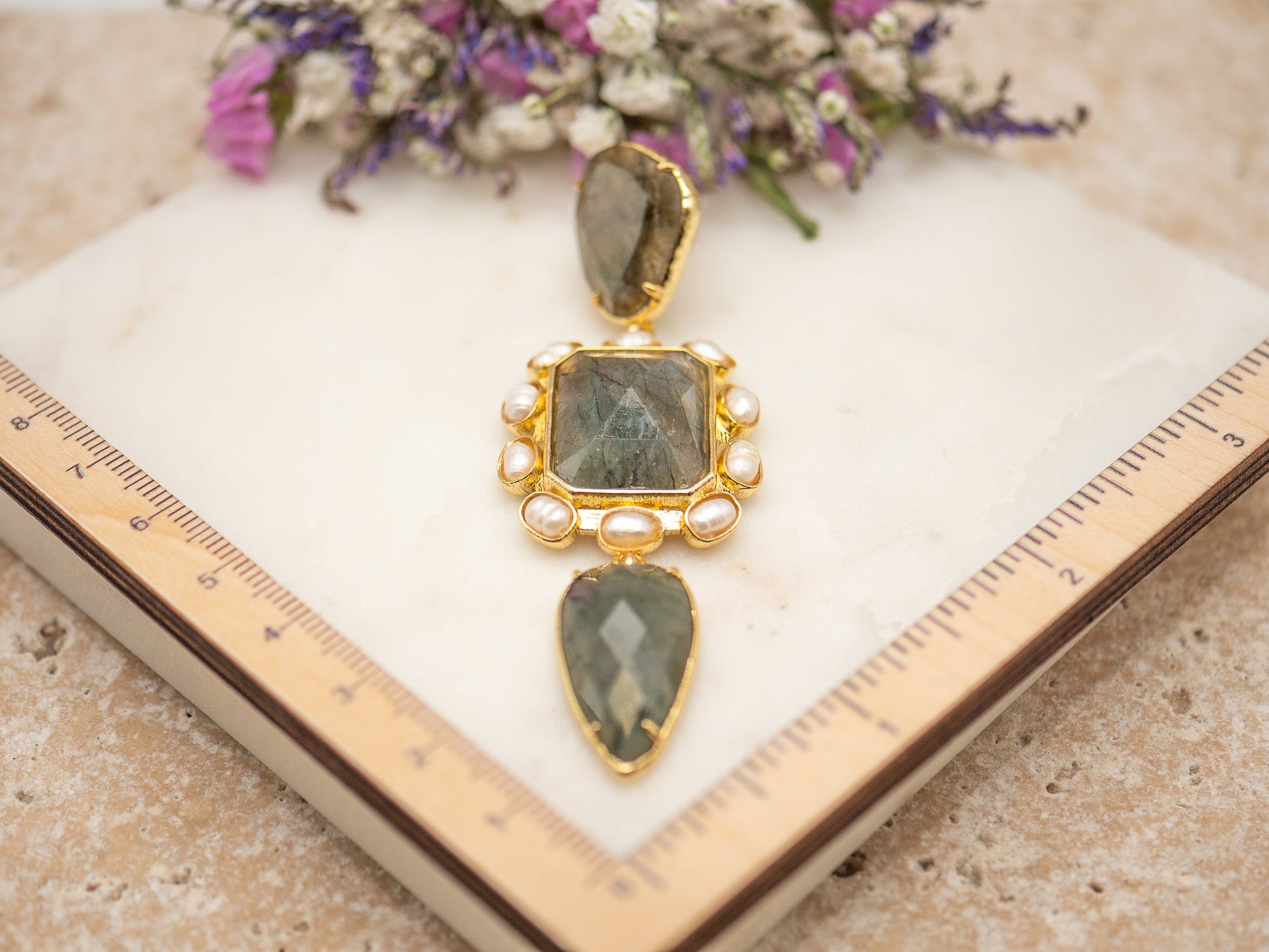 • Labradorite goutte inversée (bas) : 2,4 x 1,6 cm