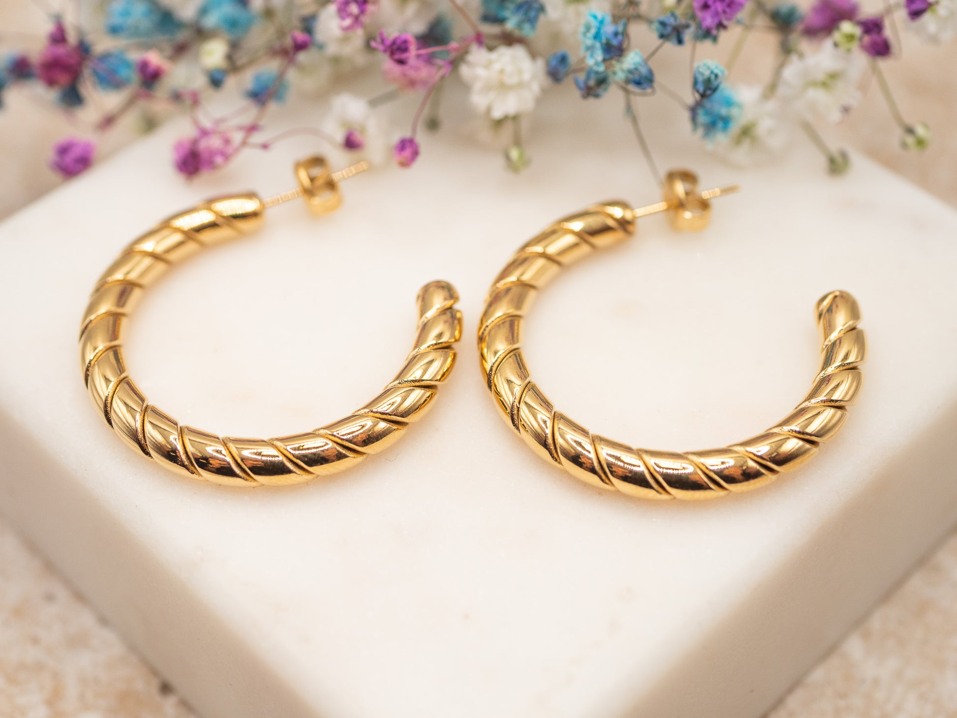 Leur design torsadé apporte du relief et capte la lumière sous tous les angles, pour un effet chic sans effort.