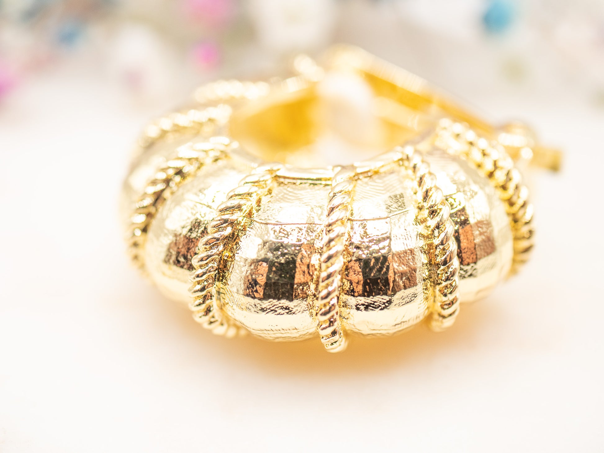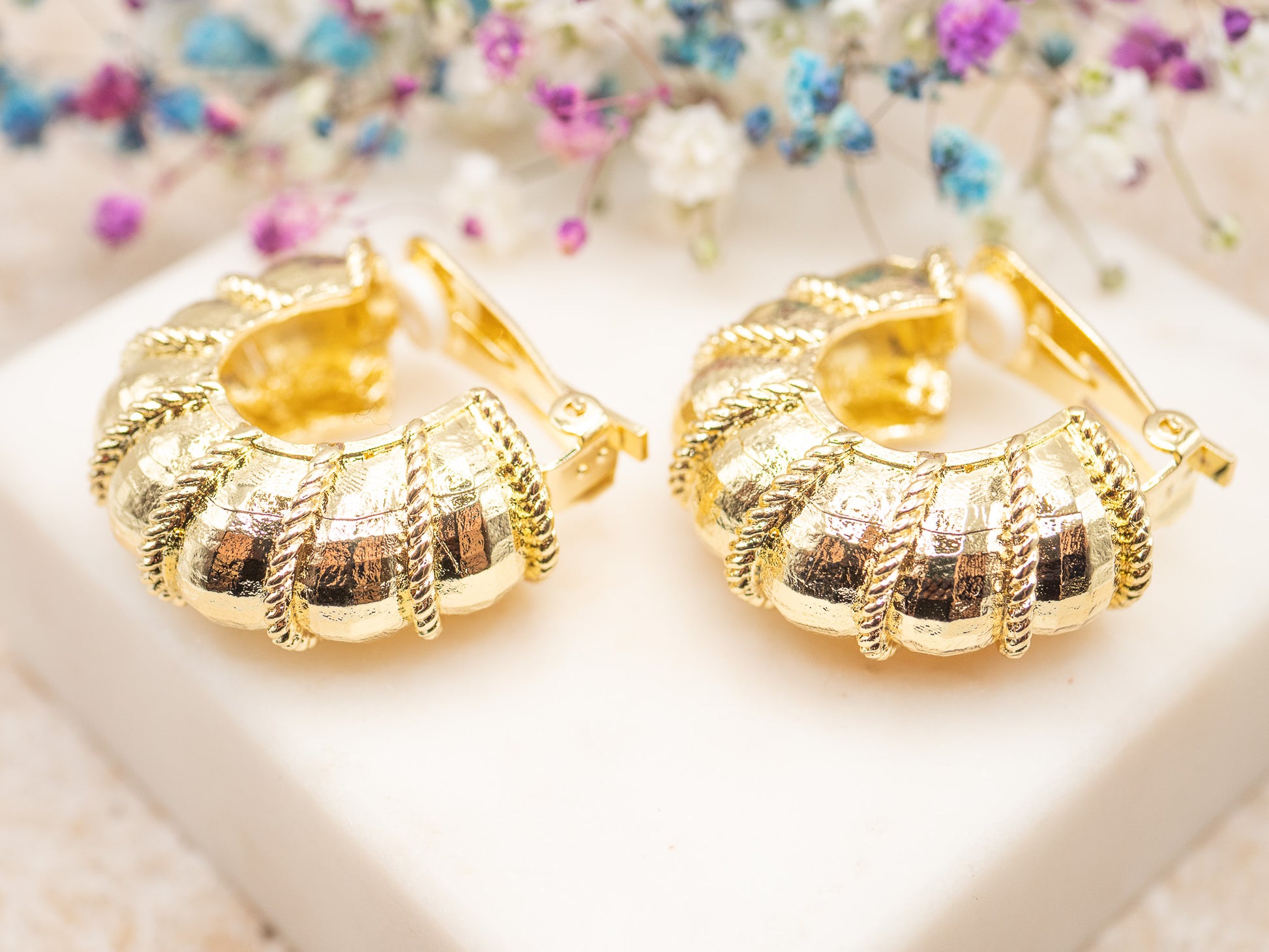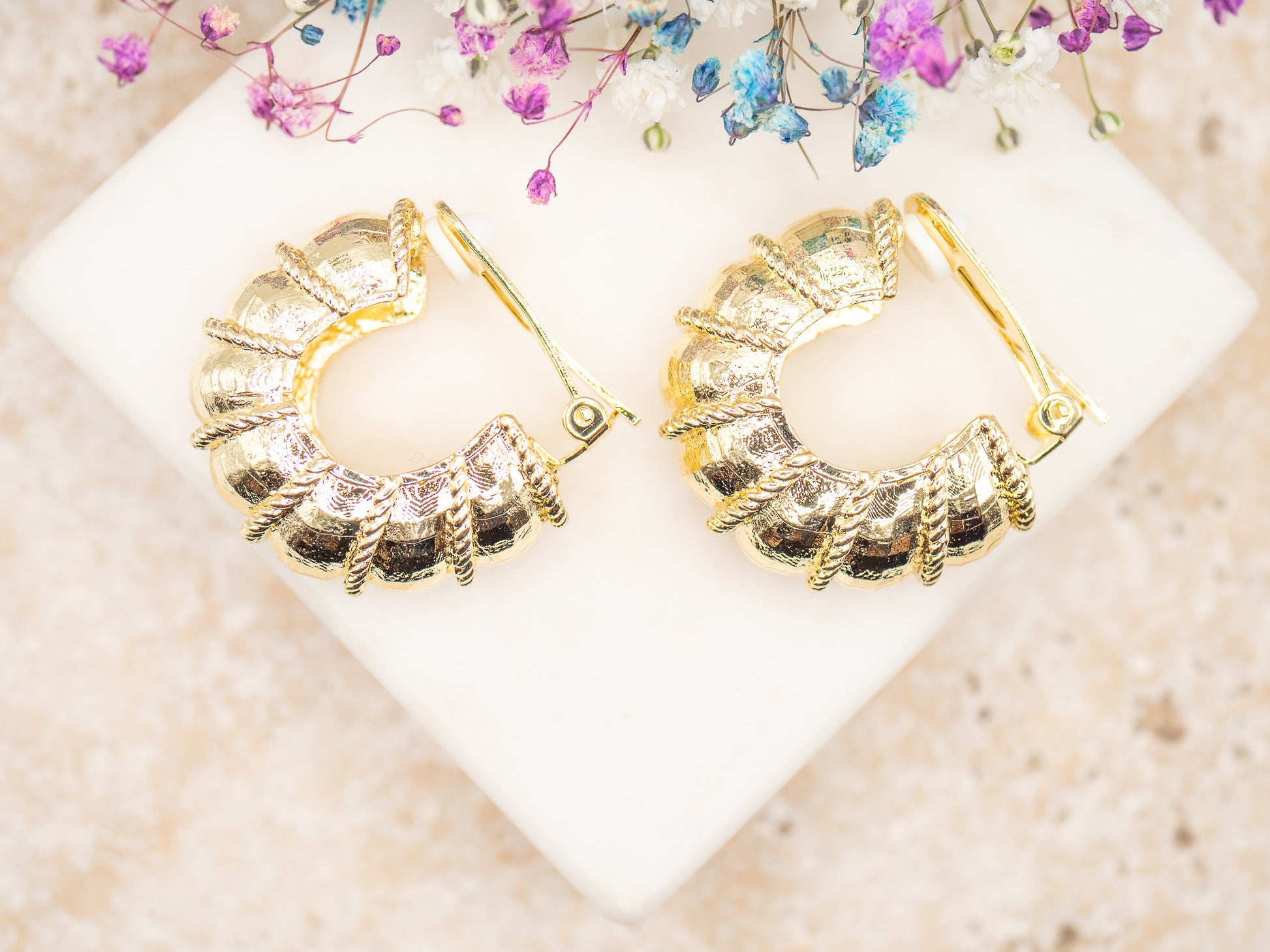 Ces créoles clips bombées en plaqué or 18 carats sont sculptées comme des rubans torsadés, enroulés sur une base texturée ultra lumineuse.