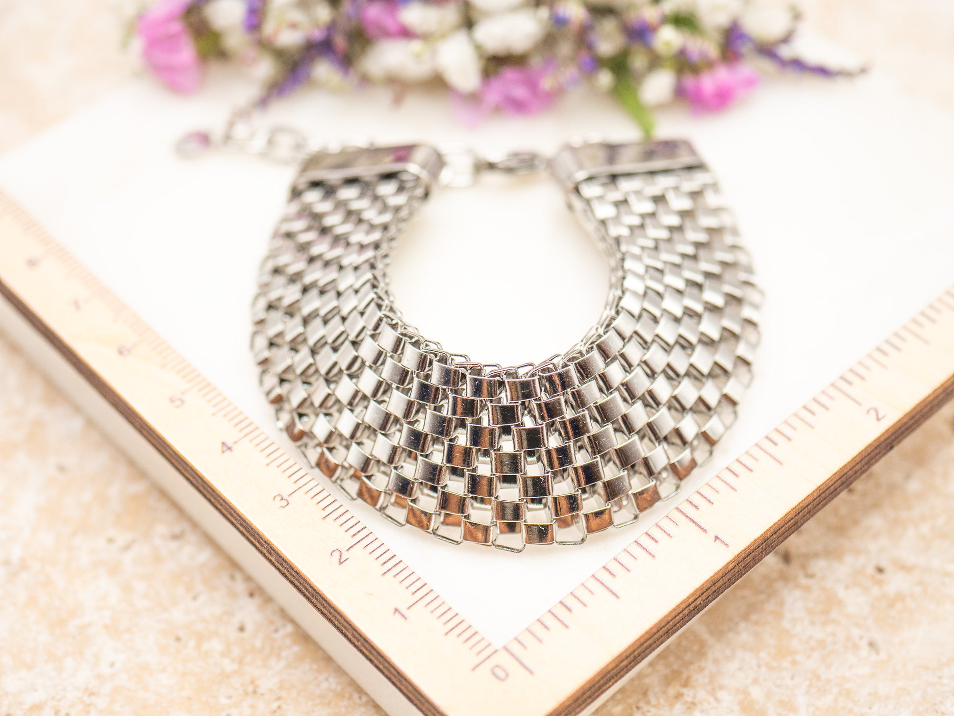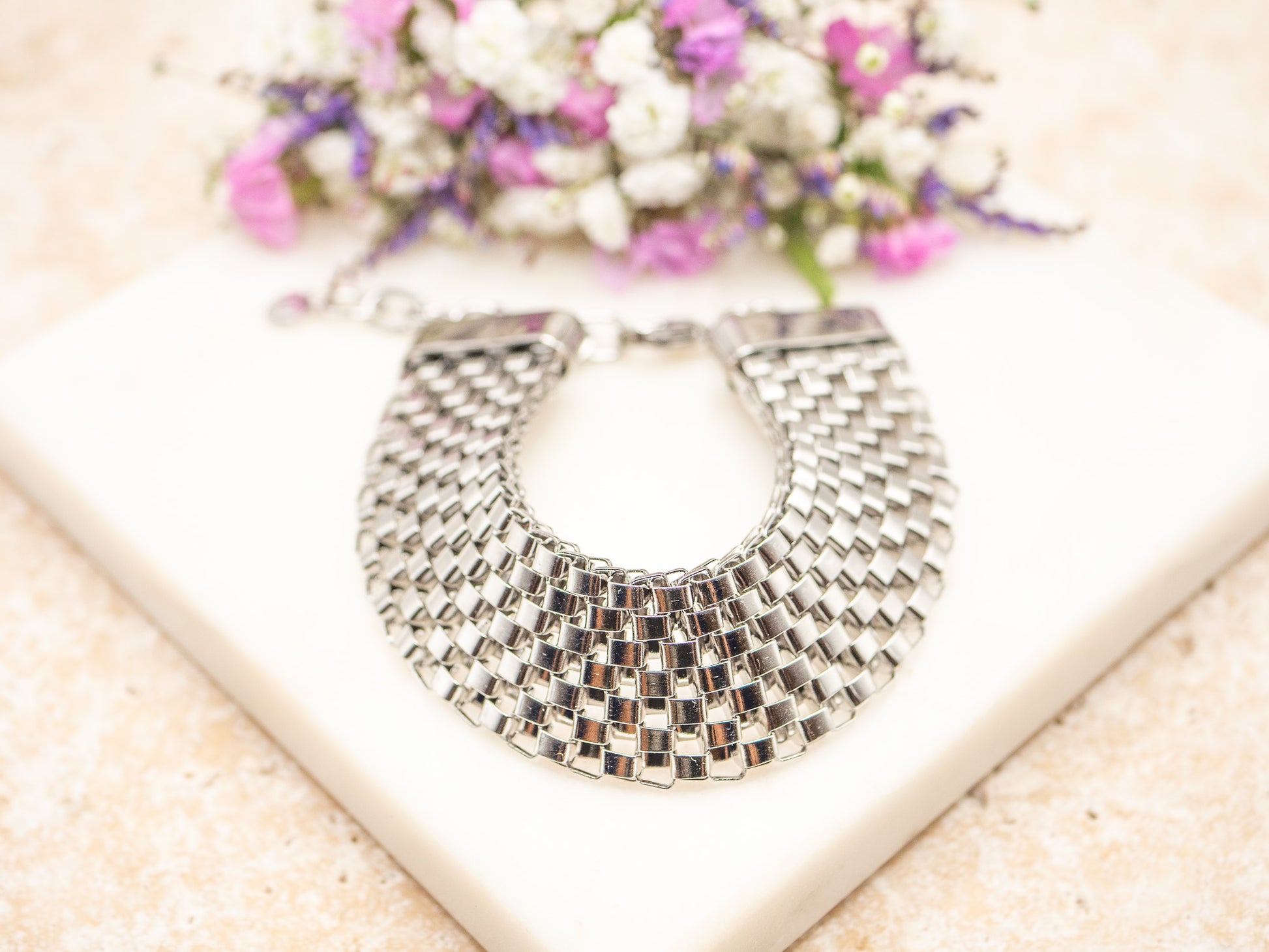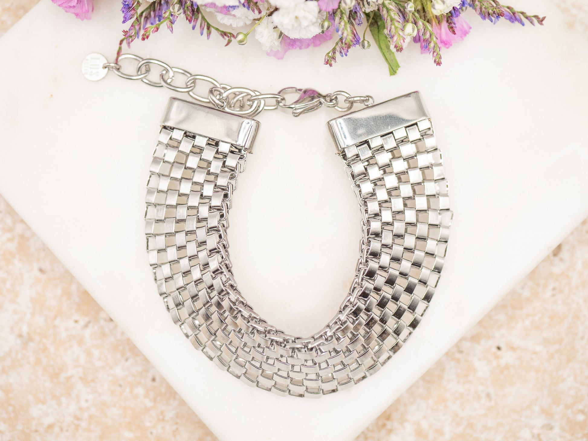 Hampstead, c’est le bracelet des contrastes : souple mais structuré, brillant mais sans excès, affirmé sans jamais être rigide. Composé de maillons plats en acier inoxydable, il forme une manchette fluide de 3,5 cm de large, qui épouse le poignet avec élégance. Son fermoir réglable permet un ajustement confortable, pour un porté près de la peau ou plus relâché.
