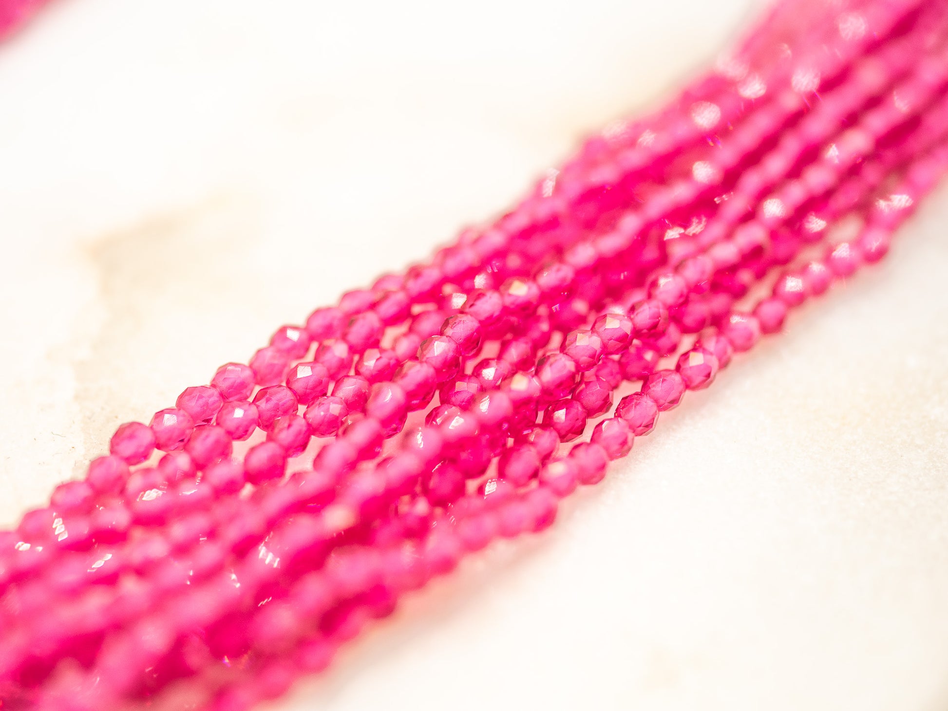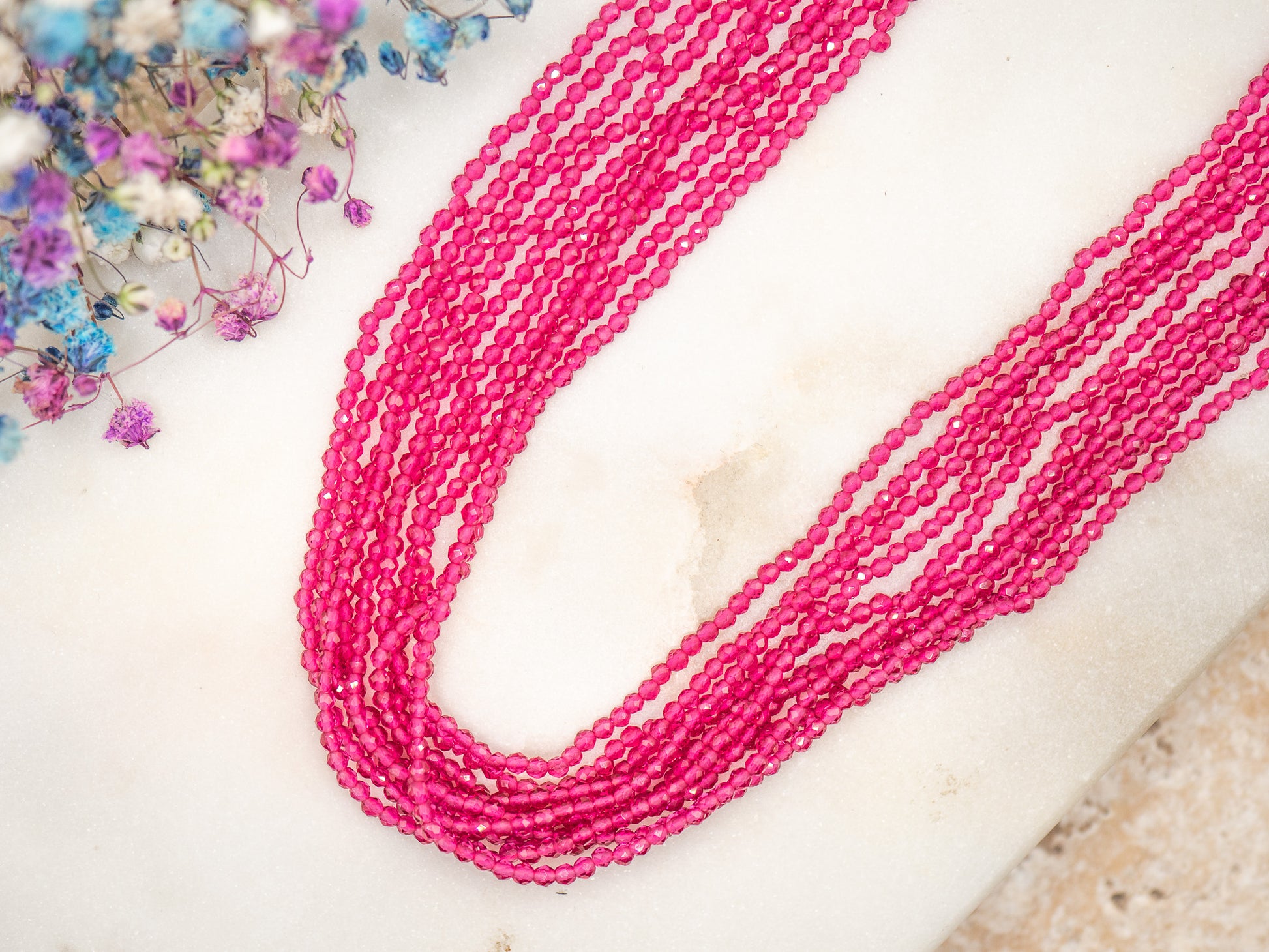 • Perles : Perles de verre facettées teintées (~2 mm)
