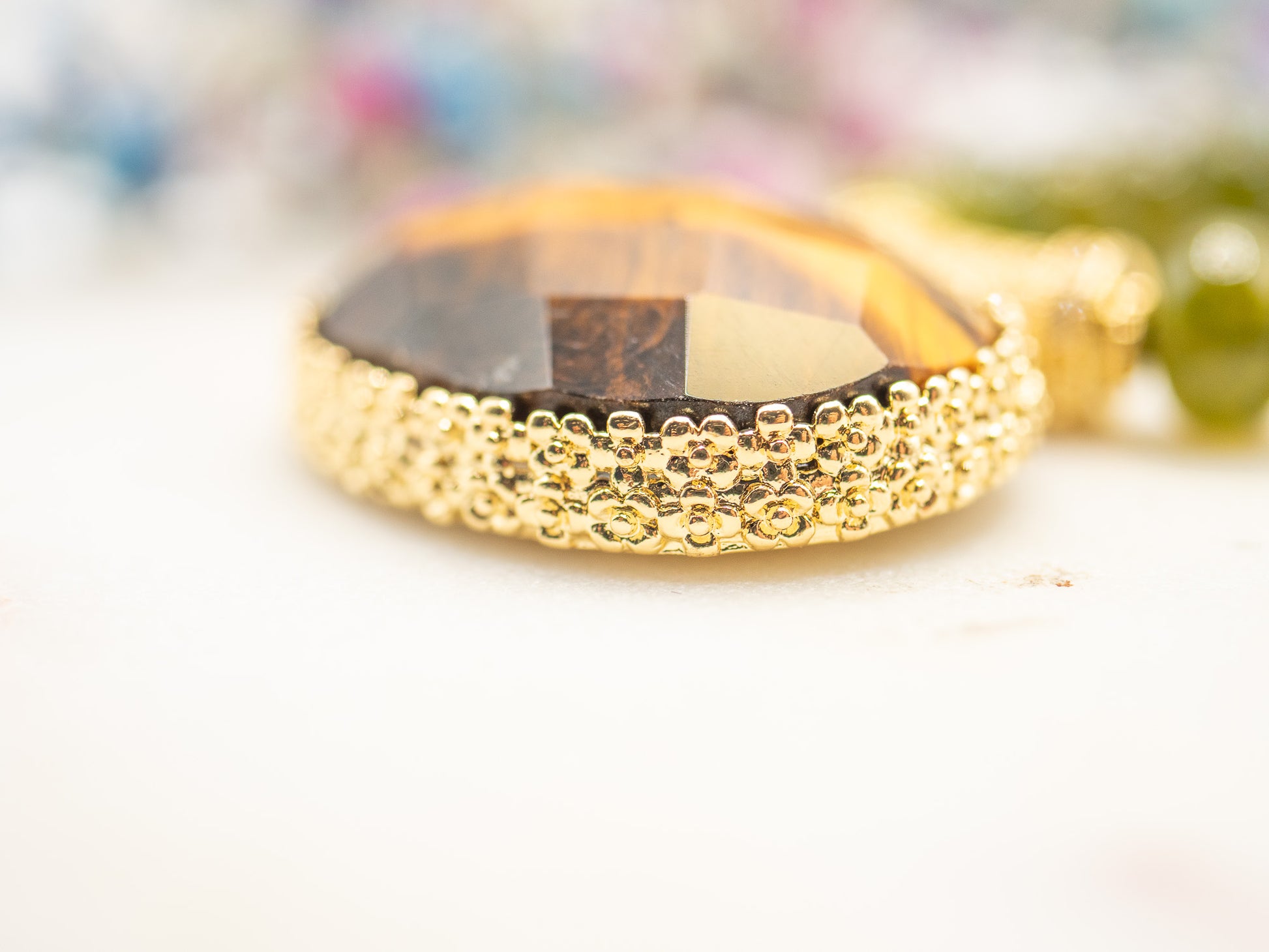 • Pendentif central : œil de tigre (~4 x 3 cm)