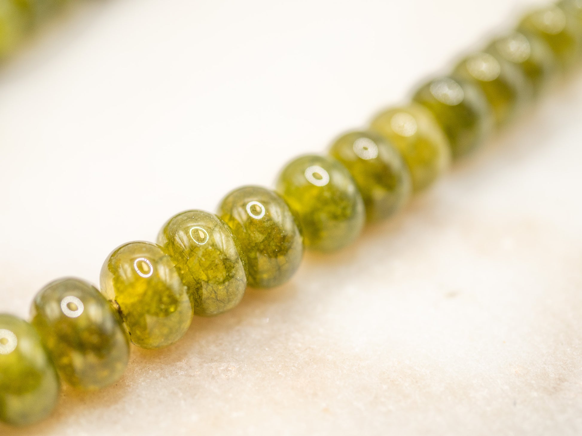 • Perles : Perles rondes en jade vert (~0,9 cm de diamètre)