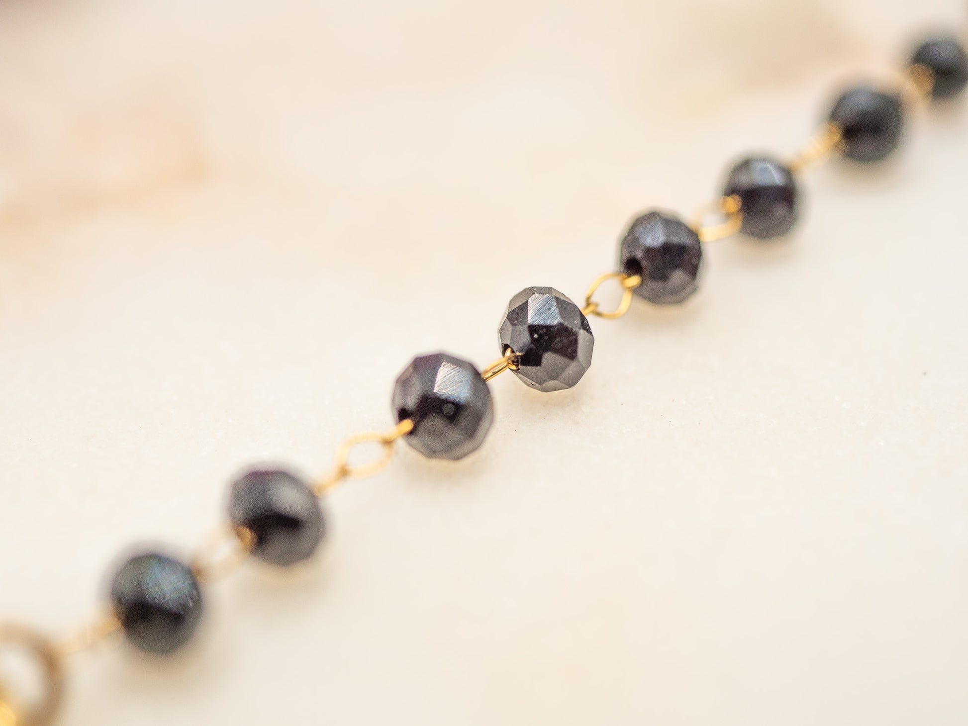 • Perles d’onyx noir : env. 0,4 cm chacune