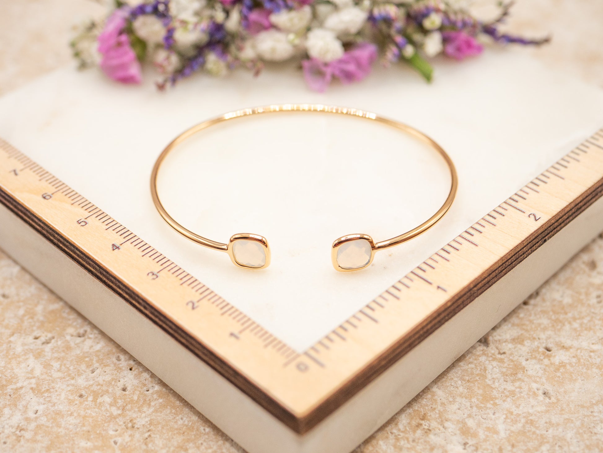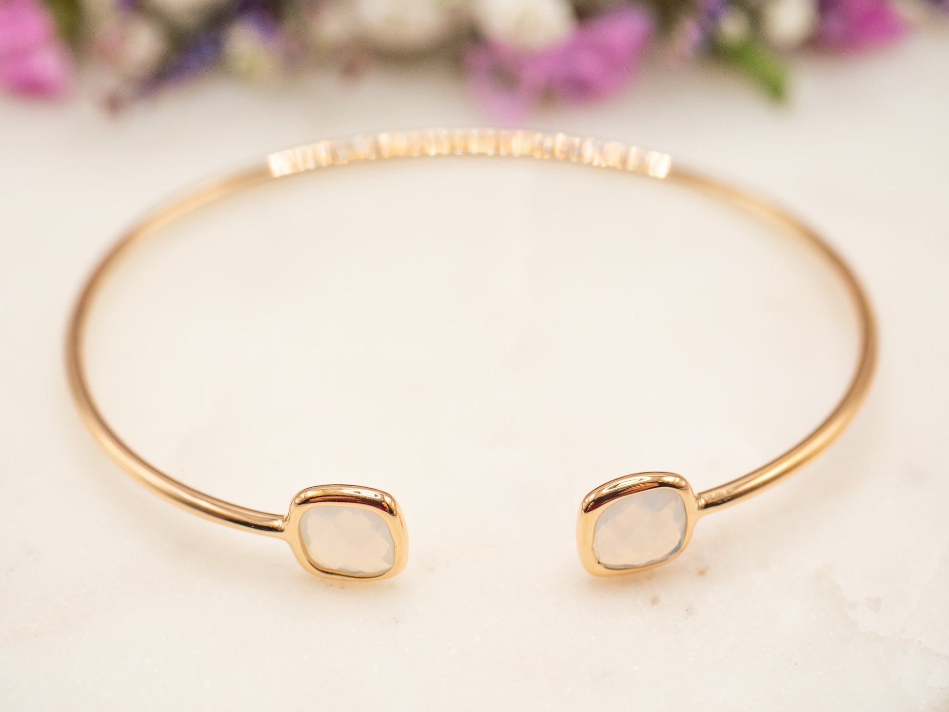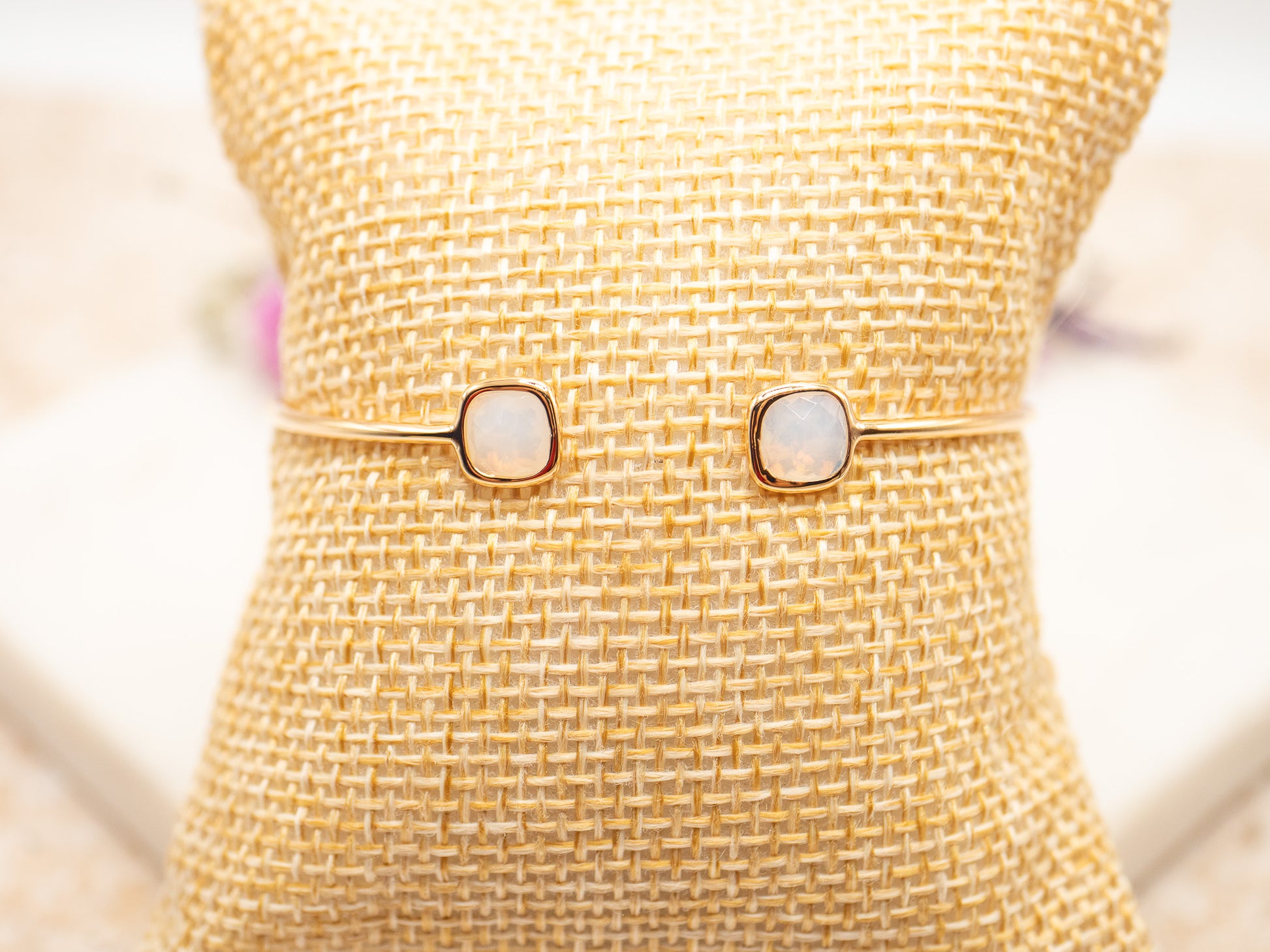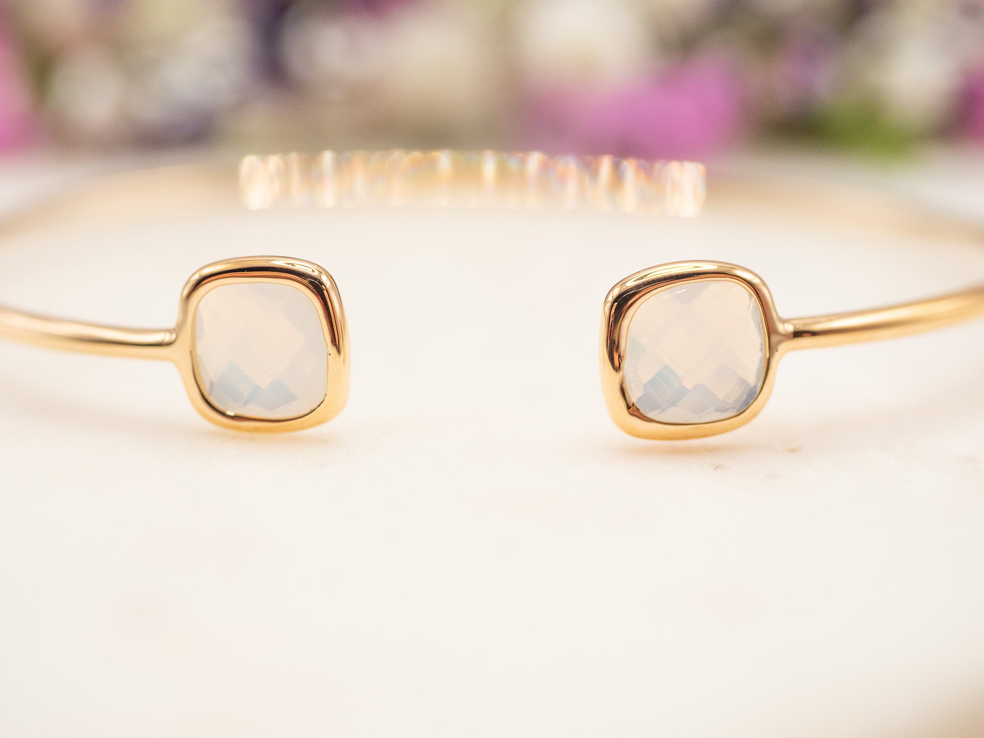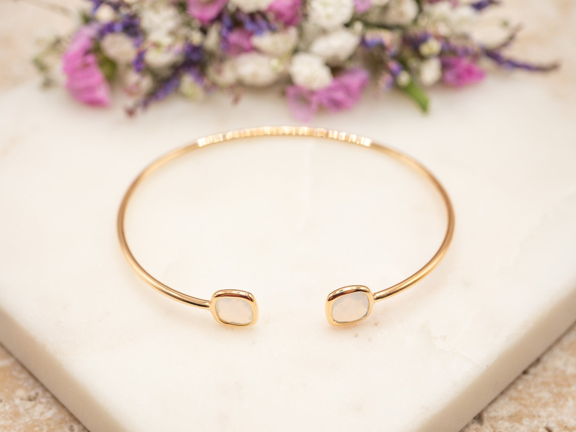 Belgravia, c’est le bracelet des femmes qui n’ont rien à prouver, seulement à rayonner. Un jonc fin en plaqué or 18 carats, orné à ses extrémités de deux cristaux aux reflets nacrés subtilement irisés. Leur surface facettée capture la lumière tout en douceur, comme un voile de brume sur un matin de septembre. Cette pièce évoque la féminité dans ce qu’elle a de plus intemporel : pure, affirmée, sans surenchère.