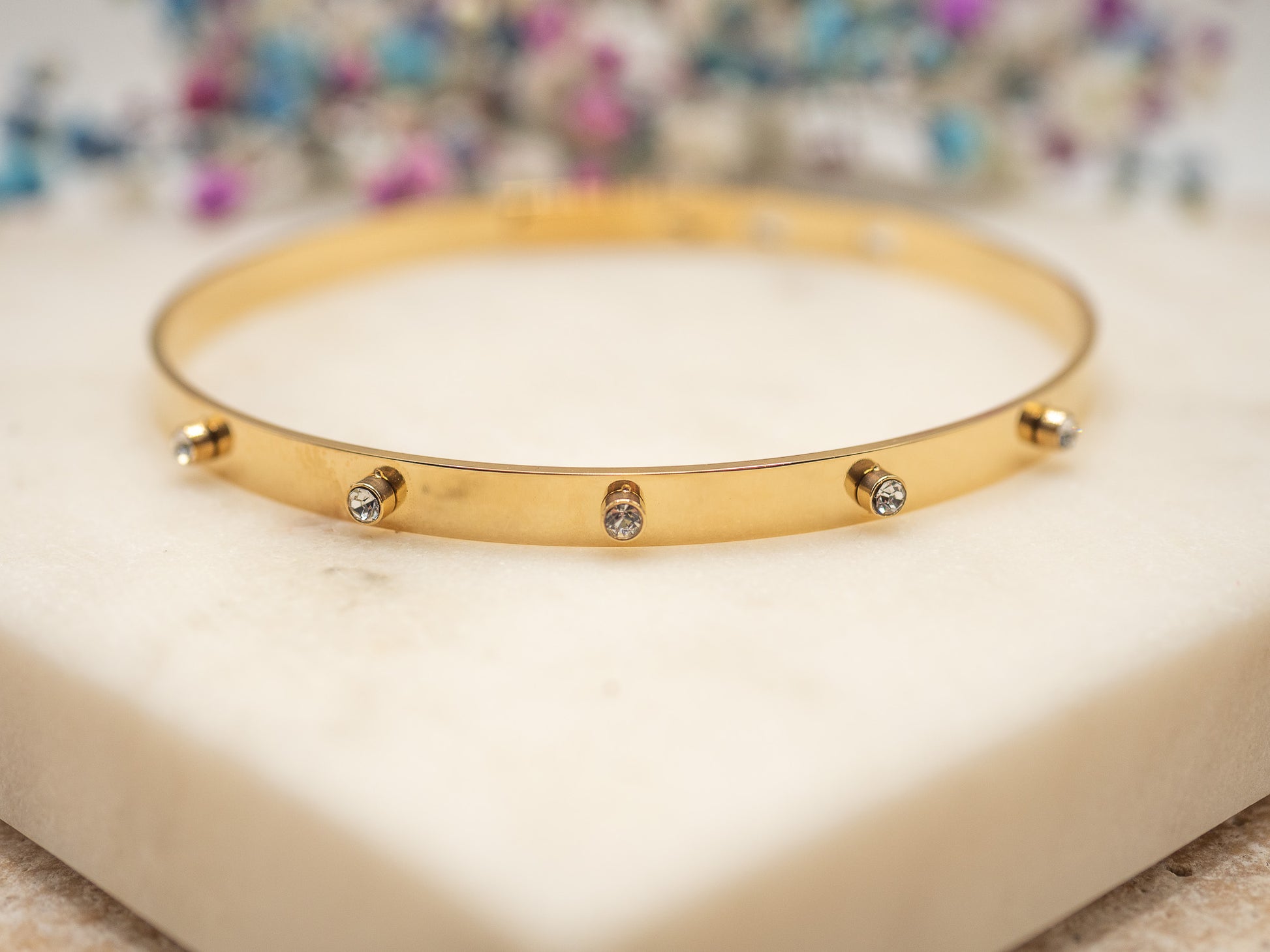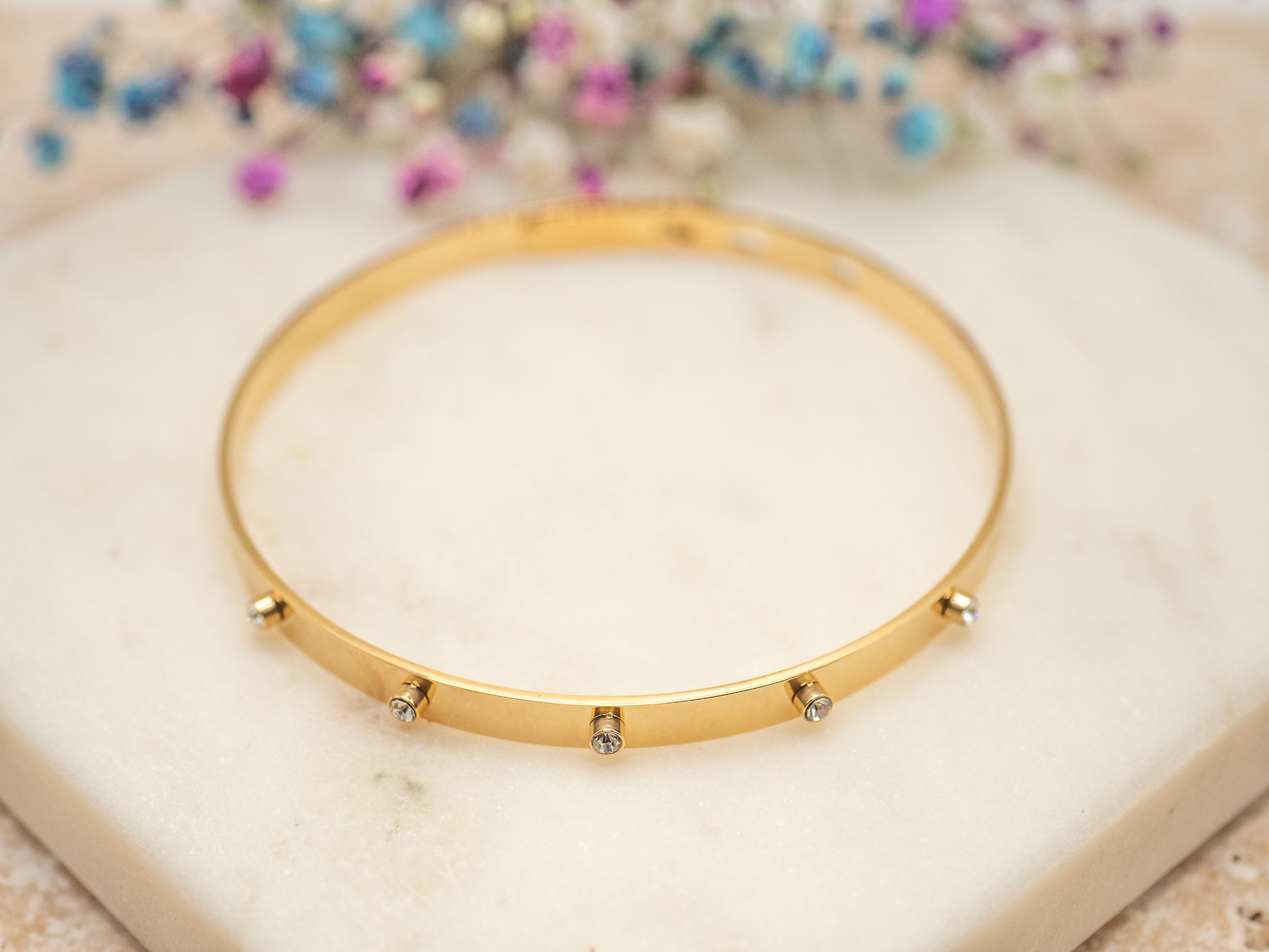 C’est un bijou tout en finesse, à la fois classique et original, parfait pour illuminer un poignet avec subtilité. Léger et facile à enfiler grâce à sa structure semi-ouverte, Goldberry Lane habille la main avec grâce, et accompagne aussi bien un look du quotidien qu’une tenue de fête.